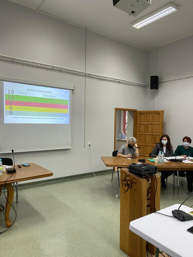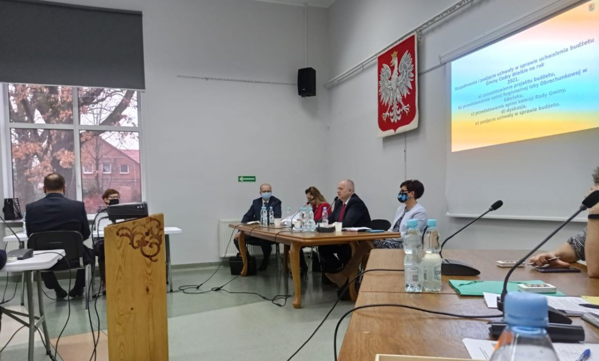 Radni Gminy Cedry Wielkie jednogłośnie przyjęli na dzisiejszej sesji uchwałę budżetową. Przyszłoroczny budżet jest bardzo ostrożny. Mniejsze są niestety wpływy, co odbije się na inwestycjach. Realizacja niektórych z nich musiała zostać przesunięta na później. Na wszystkie działania inwestycyjne w przyszłym roku zaplanowano ponad 15 mln zł.