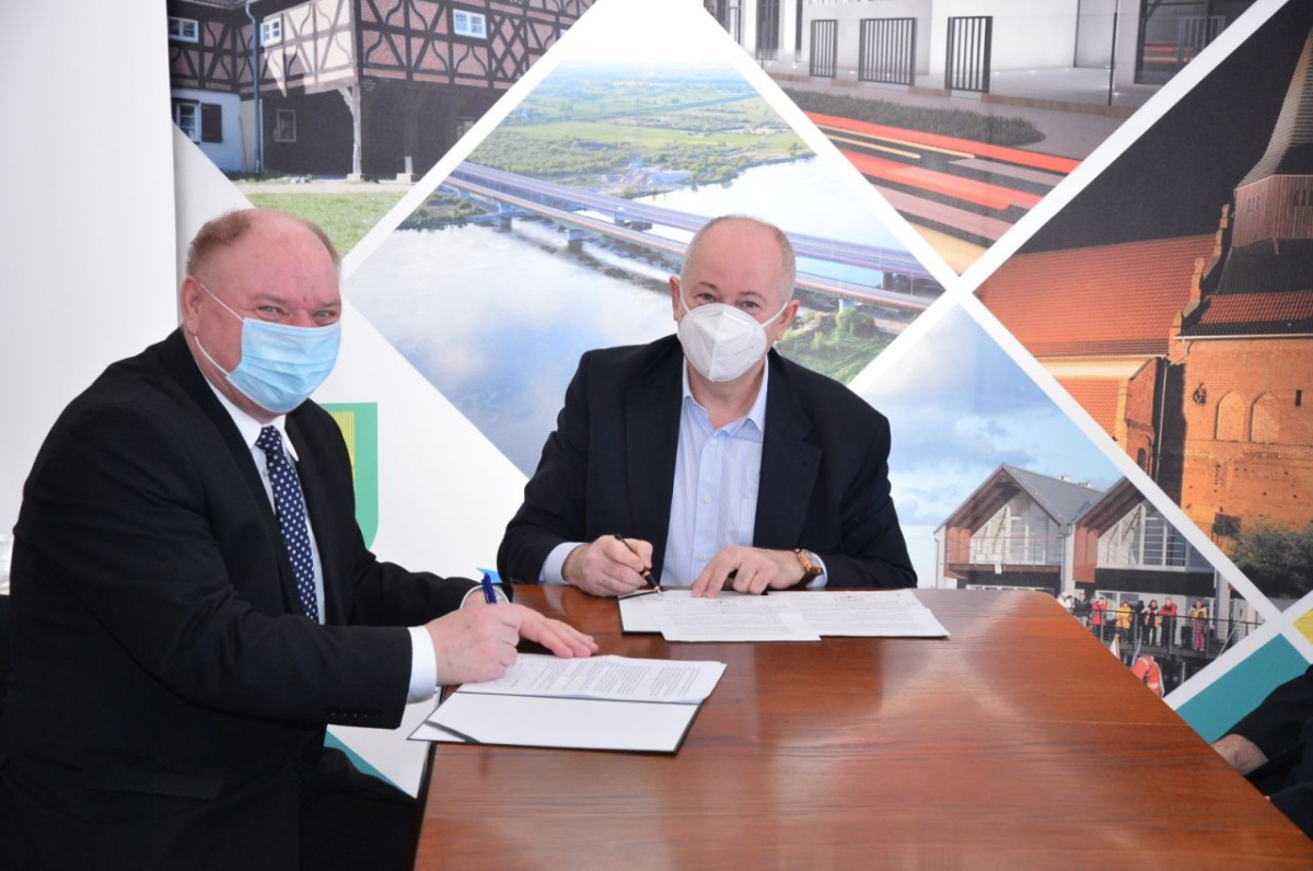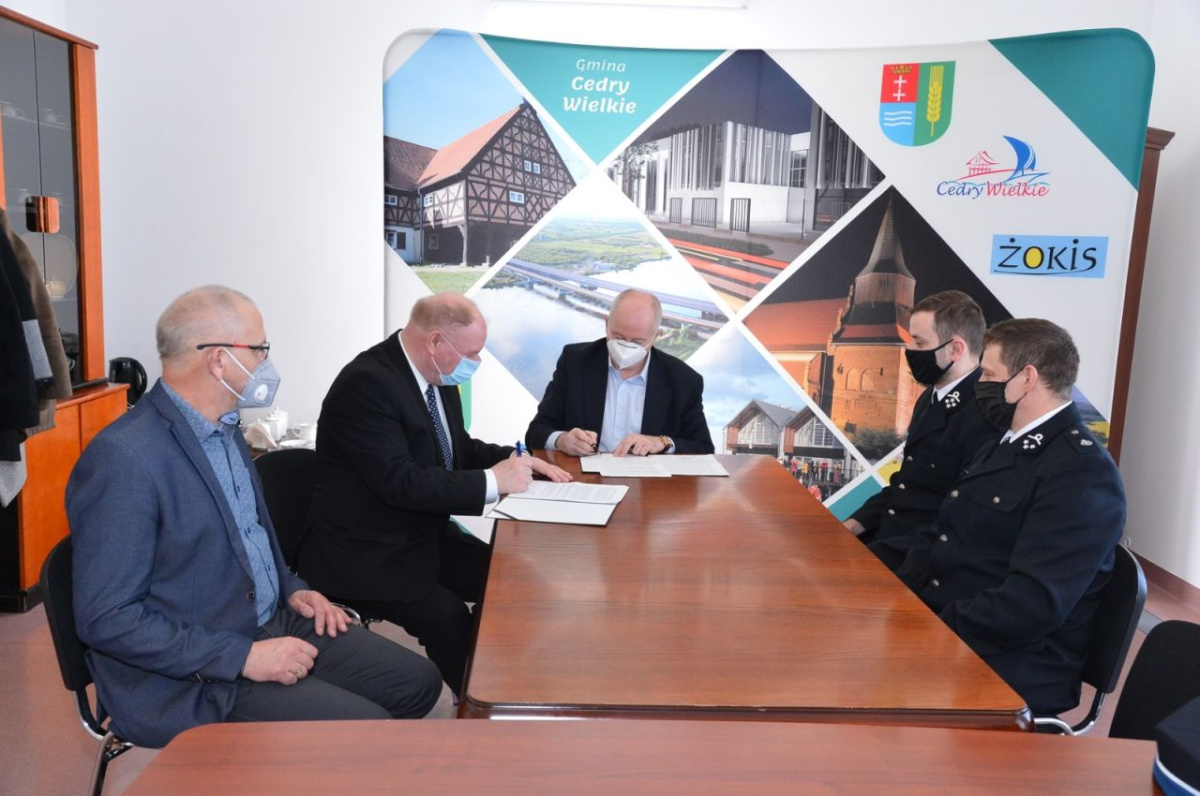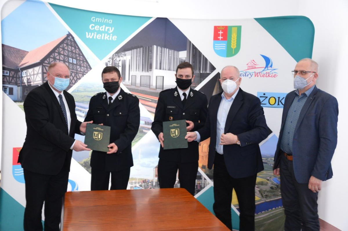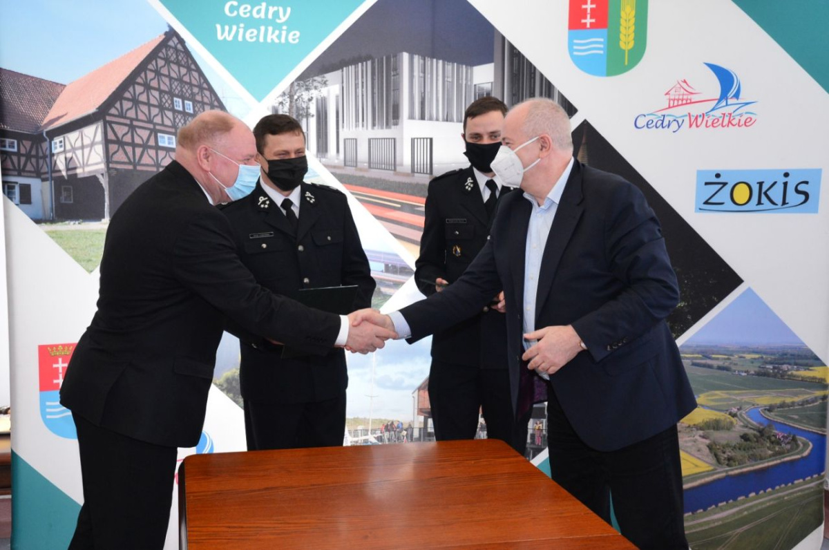 Starosta Stefan Skonieczny i wójt Janusz Goliński podpisali umowę, dzięki której Starostwo Powiatowe w Pruszczu Gdańskim przekaże 100 tysięcy złotych na rozbudowę remizy w Cedrach Wielkich.