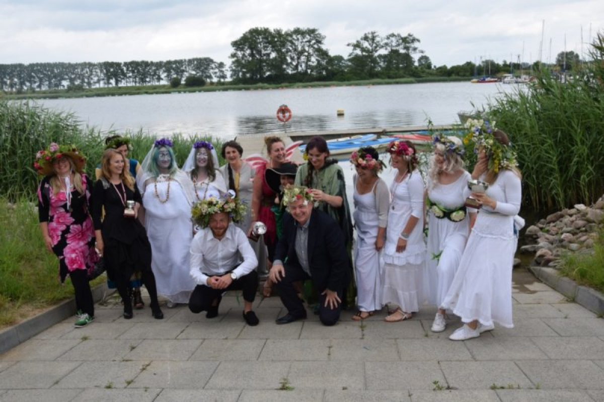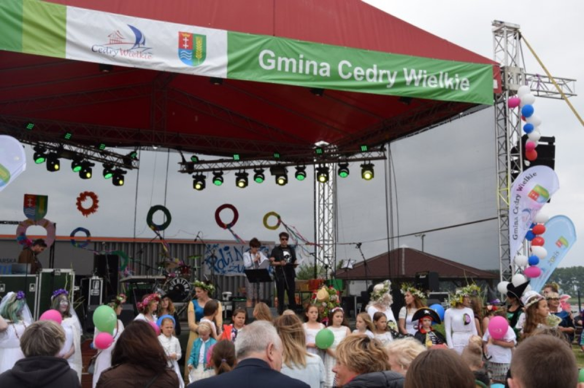 W tradycji ludowej Noc Świętojańska jest świętem wody i ognia, słońca i księżyca i w takiej konwencji była przygotowana impreza stanowiąca wizytówkę podejmowanych przez Gminę działań w zakresie promocji kultury i sportu. Imprezę zapoczątkowała Msza Święta na wodzie, odprawiona przez księdza proboszcza dr Czesława Sołtys z kościoła filialnego pw. Ducha Świętego w Cedrach Małych. Następnie głównym pomostem, na główne miejsce imprezy przeszła parada kolorowych postaci tj.: czarownic, rusałek i nimf wodnych, w które wcieliły się przedszkolaki i uczniowie z placówek oświatowych Gminy Cedry Wielkie, Panie z Kół Gospodyń Wiejskich i sołectw z terenu Gminy Cedry Wielkie, a także mieszkańcy oraz zaproszeni goście. Uroczystego otwarcia imprezy dokonał Pan Janusz Goliński Wójt Gminy oraz Pani Bożena Daszewska Przewodnicząca Rady Gminy Cedry Wielkie.