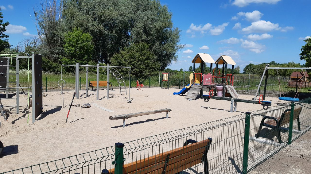 Prace przy rozbudowie istniejącego już placu zabaw rozpoczęły się w maju. Poza wymianą podłoża zamontowane zostaną także nowe urządzenia zabawowe. Wykonane też będą nowe chodniki, trawnik i mała architektura.