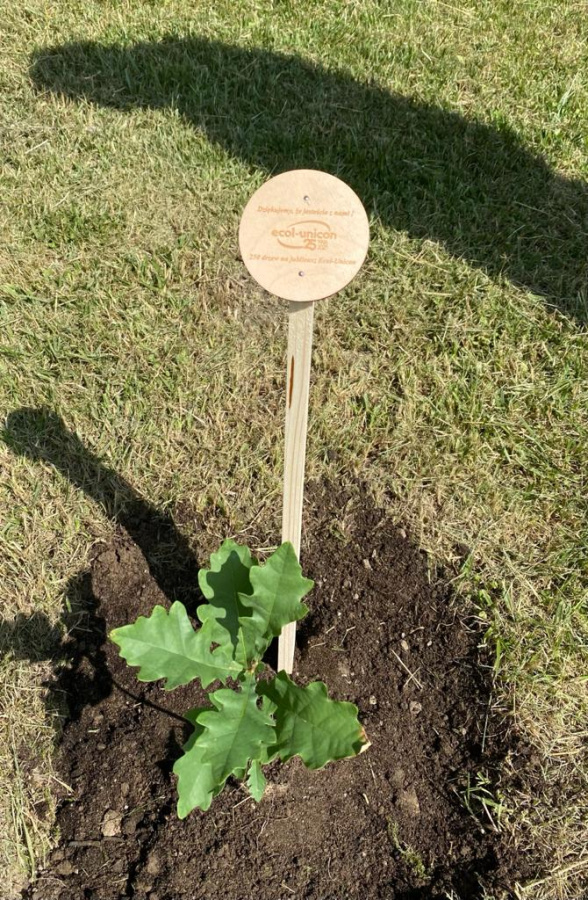 Wojciech Falkowski, prezes spółki Ecol-Unicon wręczył wójtowi Januszowi Golińskiemu sadzonkę dębu, która została posadzona przed Urzędem Gminy w Cedrach Wielkich. Jest to jedna z form uczczenia 25-lecia spółki.