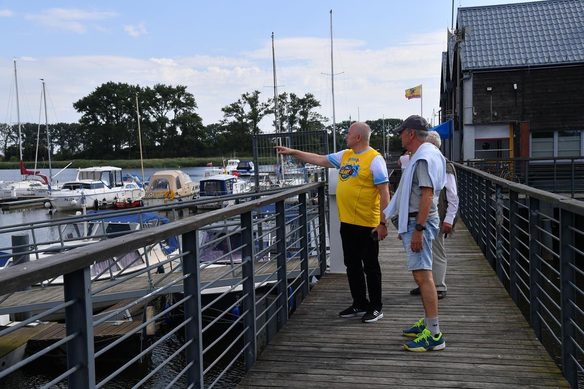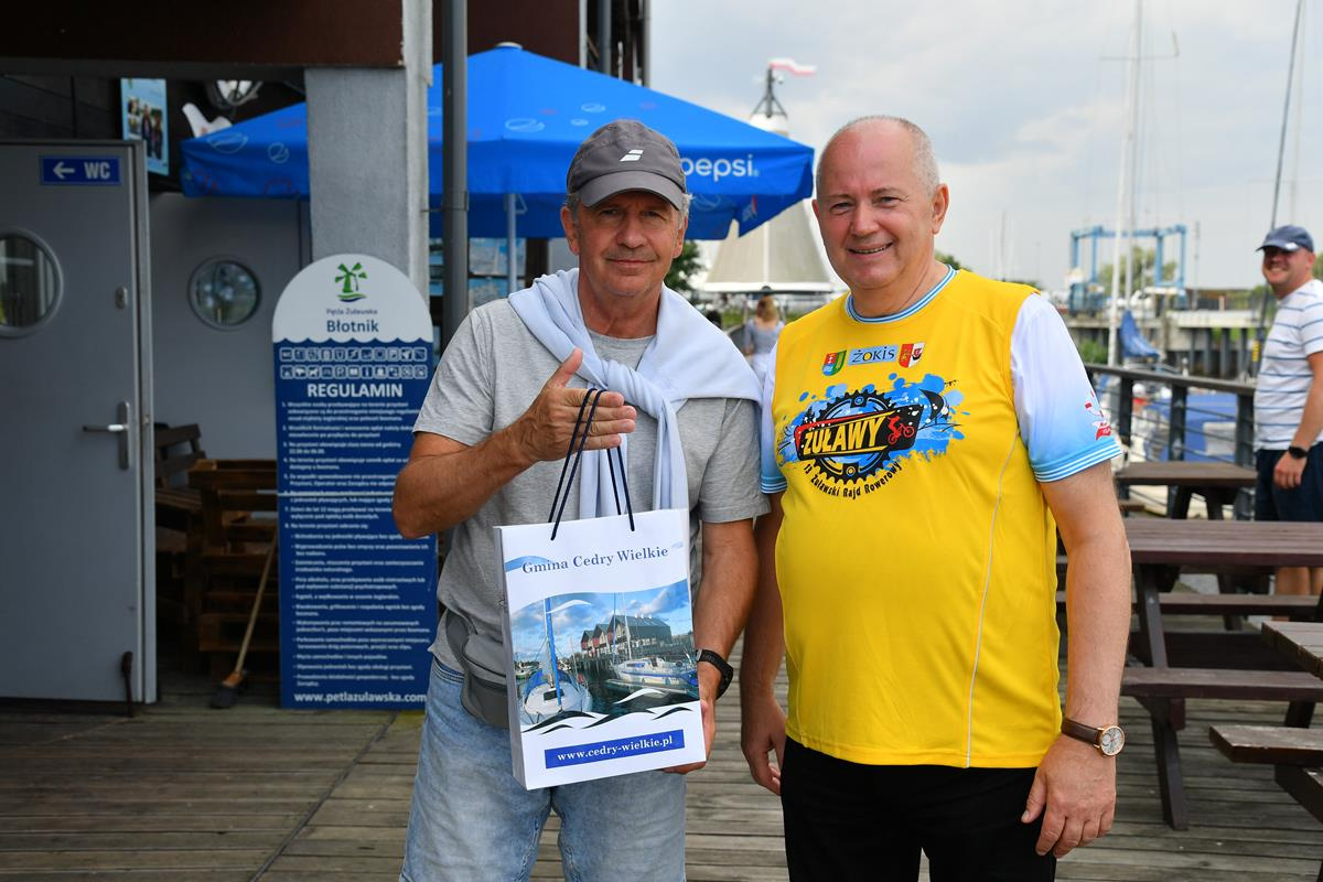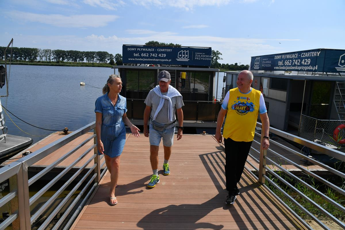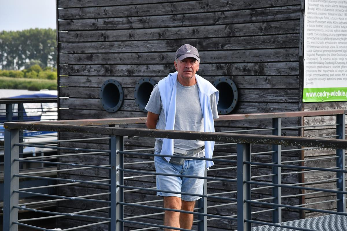 Aktor, wspólnie z wójtem Januszem Golińskim, najpierw uroczyście dał sygnał do startu Żuławskiego Rajdu Rowerowego, a później artysta podziwiał uroki mariny w Błotniku.