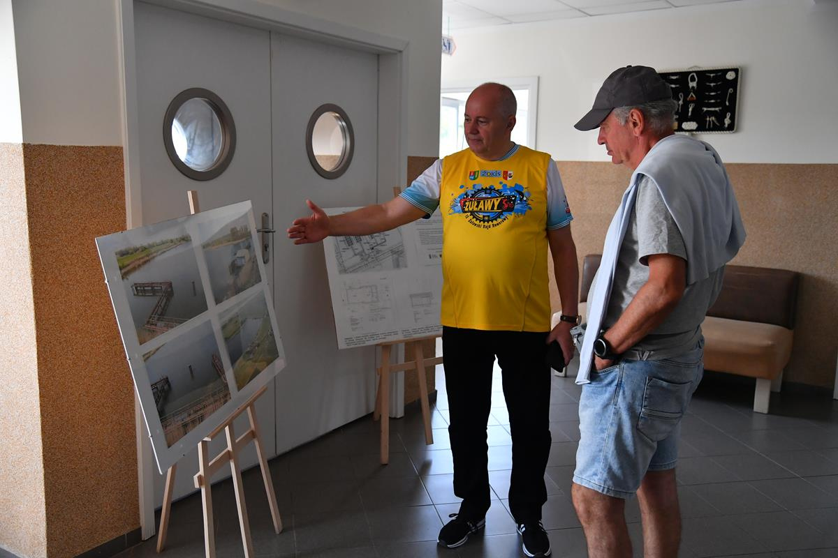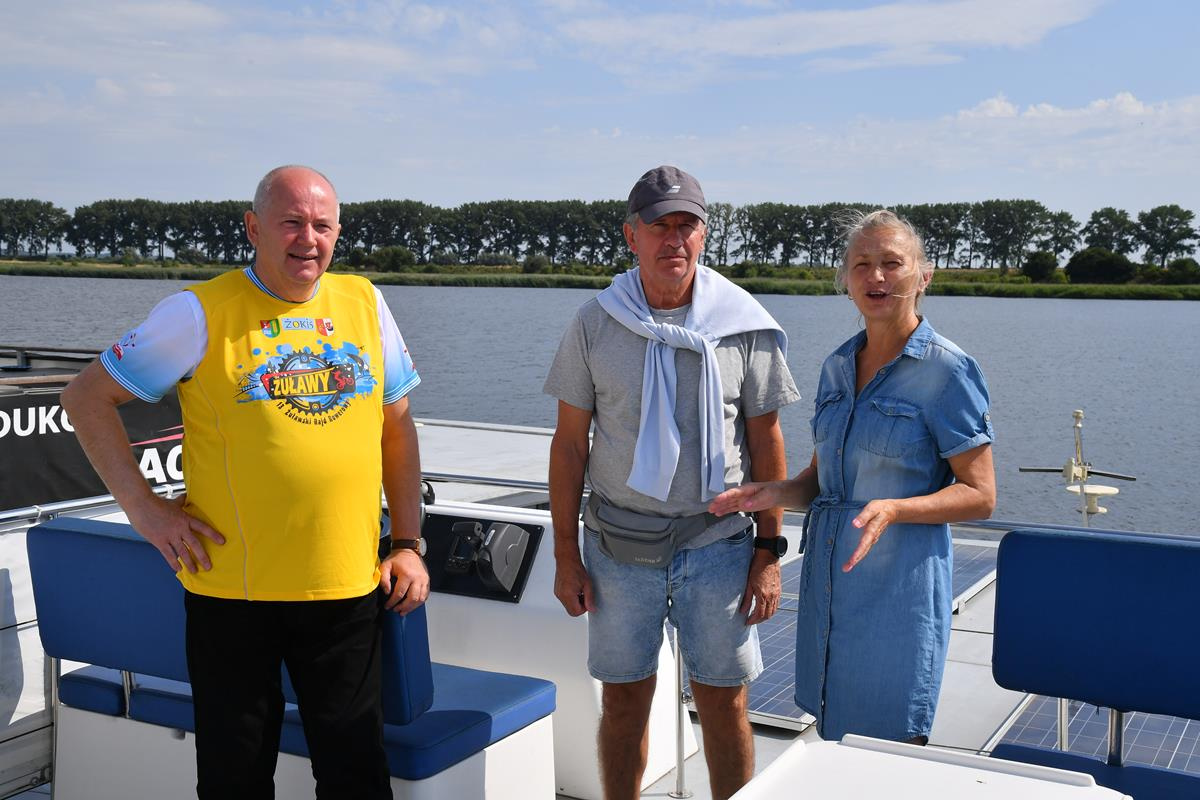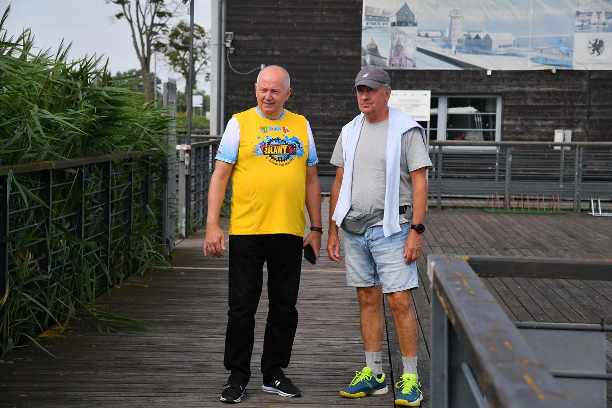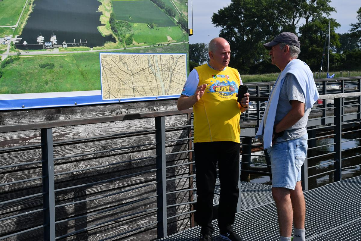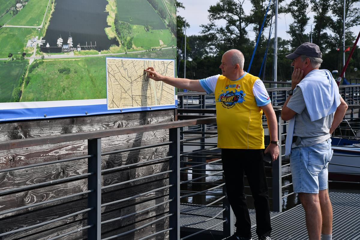 Aktor, wspólnie z wójtem Januszem Golińskim, najpierw uroczyście dał sygnał do startu Żuławskiego Rajdu Rowerowego, a później artysta podziwiał uroki mariny w Błotniku.
