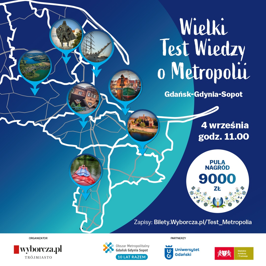 Chcesz w łatwy sposób otrzymać 5 tys. zł? Weź udział w Wielkim Teście Wiedzy o Metropolii. Organizatorami konkursu są: Obszar Metropolitalny Gdańsk-Gdynia-Sopot oraz Gazeta Wyborcza Trójmiasto. Ilość uczestników jest ograniczona, dlatego warto już teraz zarejestrować się.