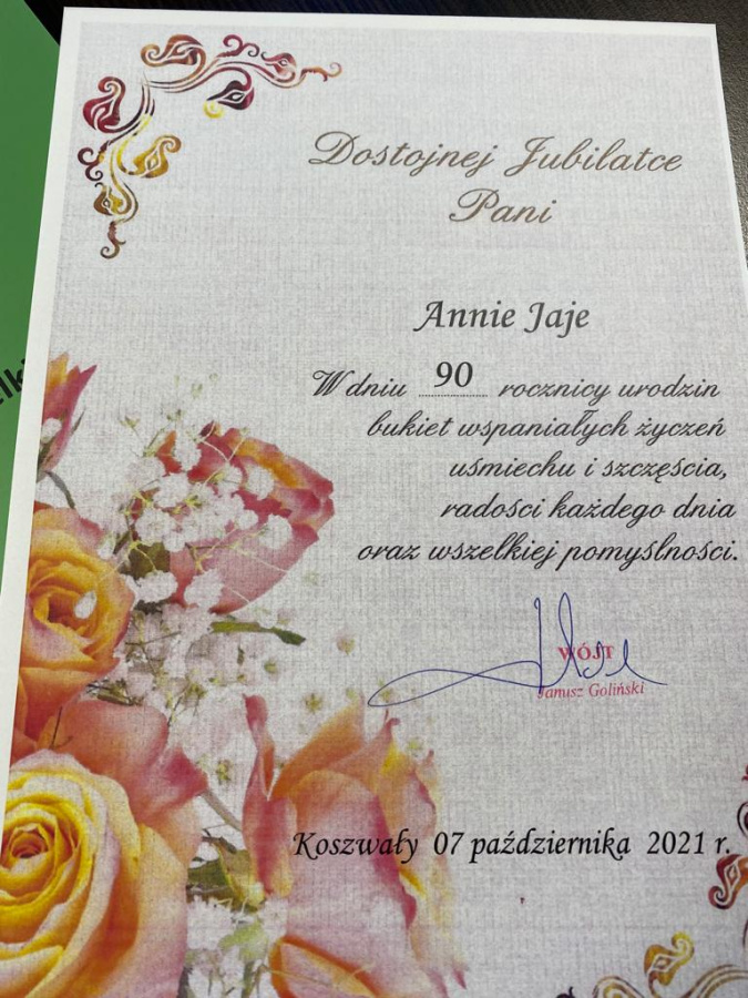– Jubilatce życzę przede wszystkim dobrego zdrowia, abyśmy jeszcze przez wiele lat mogli świętować jej kolejne urodziny. Życzę też, aby Pani Anna cieszyła się miłością swoich bliskich, by zawsze mogła na nich liczyć w trudnych chwilach – życzy wójt Janusz Goliński.