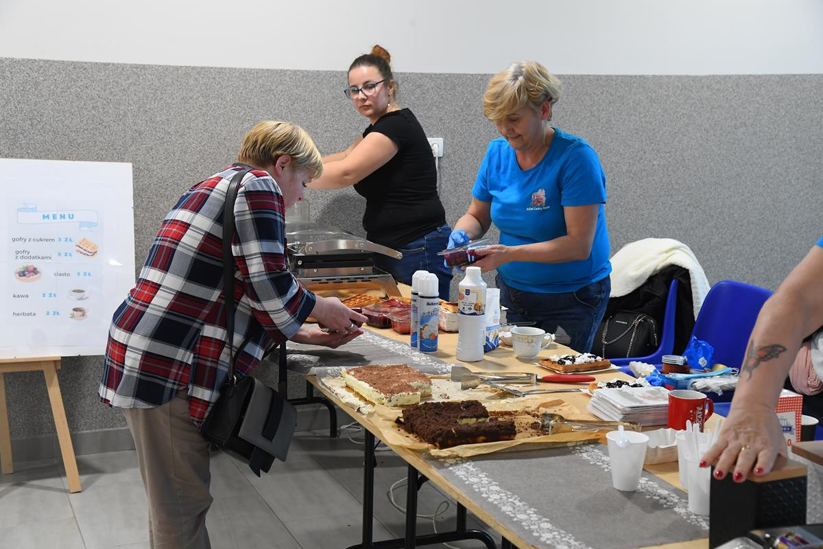 Dużym zainteresowaniem cieszyło się stoisko KGW Cedry Małe, gdzie posmakować można było pysznych ciast, napić się kawy oraz zjeść chrupiącego gofra.