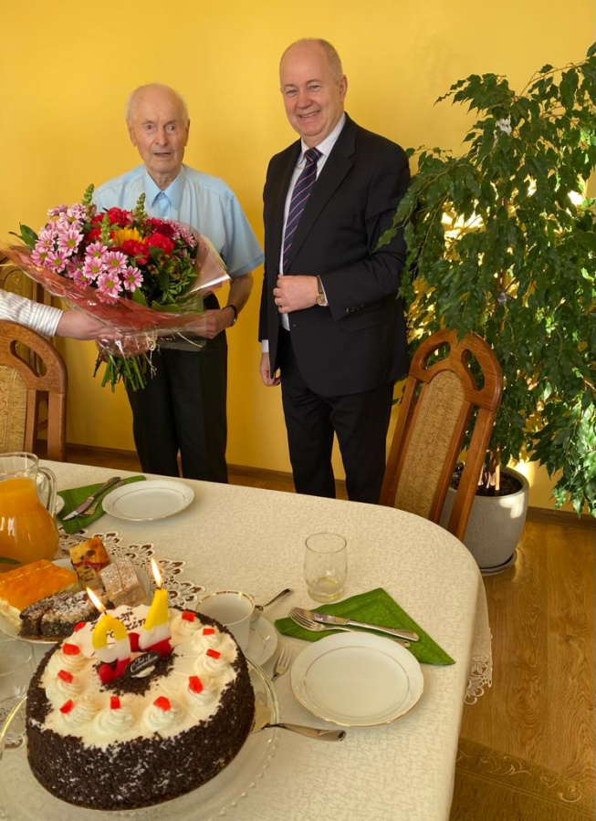 Seniora z Cedrów Wielkich z życzeniami odwiedził wójt Janusz Goliński, który życzył jubilatowi kolejnych lat dobrego zdrowia, pełnych rodzinnego ciepła.