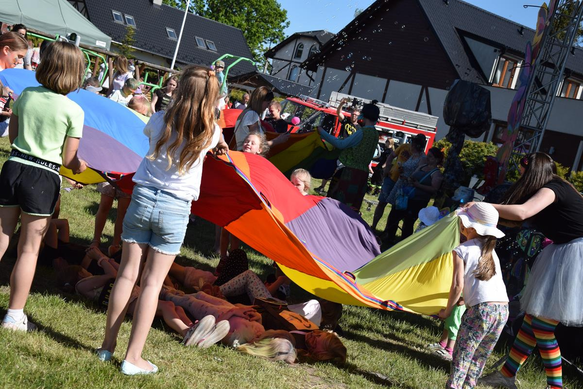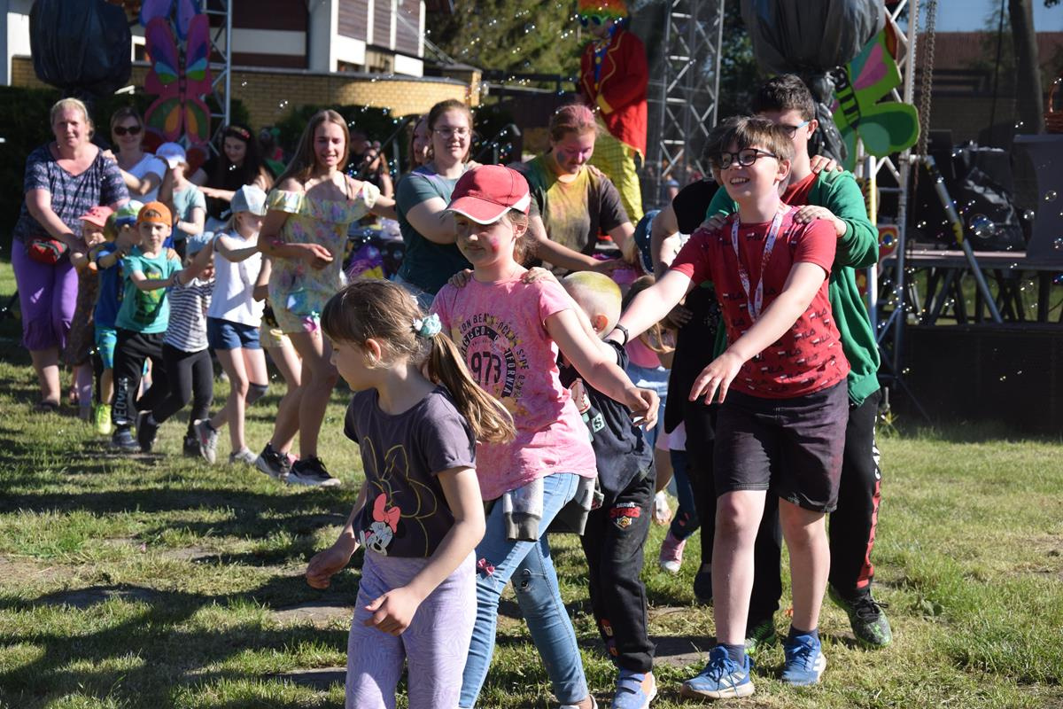 Organizatorzy zadbali, by dzieci nie nudziły się. Można było obejrzeć przedstawienie teatralne i występy artystyczne dzieci z naszych szkół. Chętni brali udział w warsztatach artystycznych, animacjach i konkursach z nagrodami. Na dzieci czekała także karuzela. Największą frajdę – również dorosłym – sprawił jednak festiwal kolorów.
