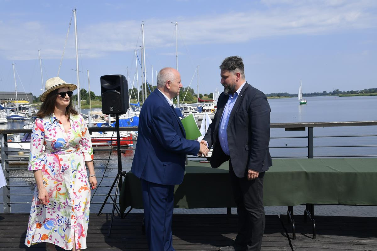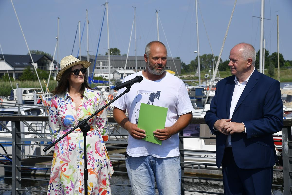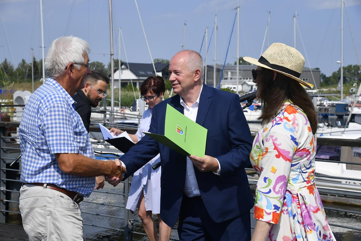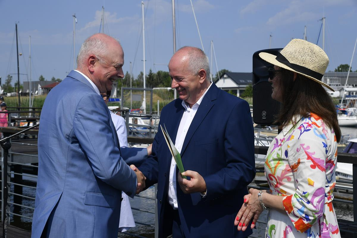 - Wójtowi Januszowi Golińskiemu gratuluję nie tylko odważnej decyzji, jaką bez wątpienia była budowa przystani żeglarskiej, ale również niezwykłej determinacji w dążeniu do celu – mówi poseł Marek Biernacki. – Jest to wzorcowy projekt unijny, ponieważ na zdegradowanym terenie powstała perełka na skalę Pomorza. Mieszkańcy gminy nie rozumieli do końca idei wójta Golińskiego. Dopiero po czasie coraz więcej osób zaczęło się do niej przekonywać.