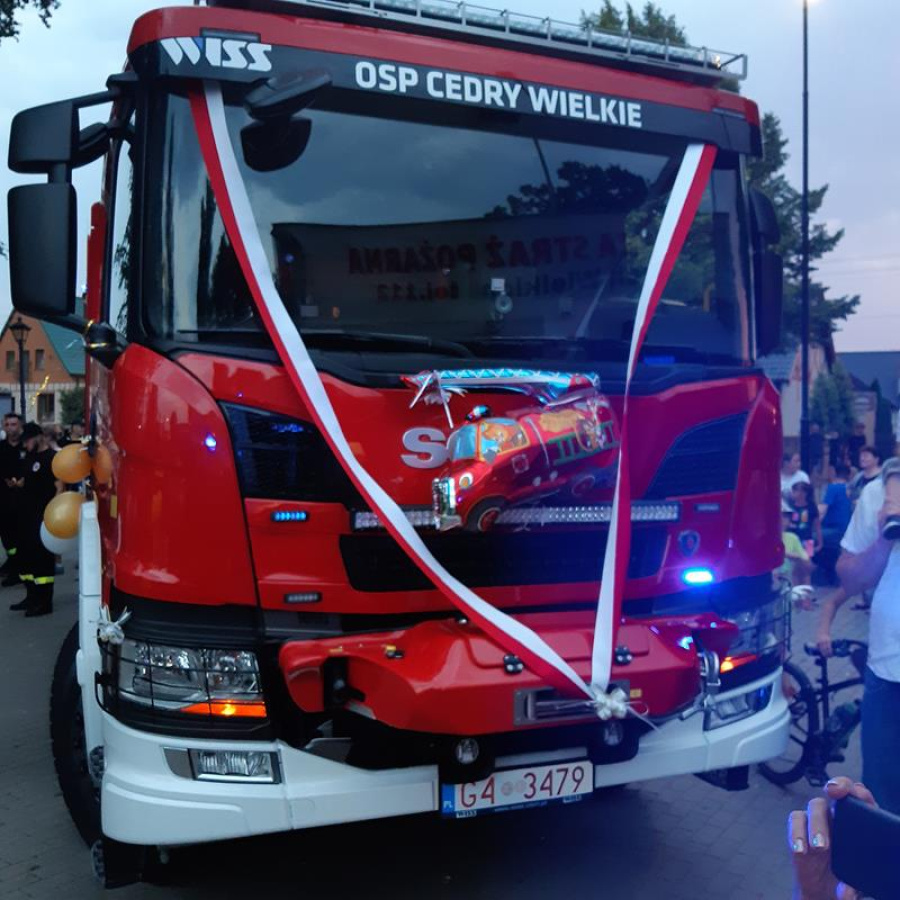Od piątku w garażu naszej jednostki parkuje Scania P360. Jej zakup był sfinansowany dzięki środkom pozyskanym z różnych źródeł. Gmina Cedry Wielkie przekazała na ten cel 540 tys. zł. Z kolei 420 tys. zł pochodziło z Krajowego Systemu Ratowniczo-Gaśniczego, 120 tys. zł z budżetu powiatu gdańskiego, a pozostałe pieniądze pozyskano od sponsorów i ze zbiórki złomu, którą zorganizowali sami strażacy.