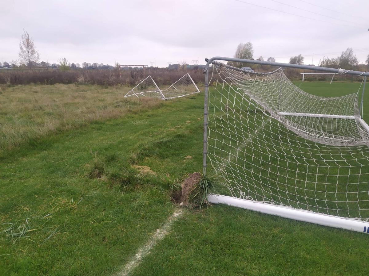 W miniony weekend nieznani sprawcy albo sprawca zniszczyli boksy dla zawodników rezerwowych oraz bramki. W tej chwili z boiska nie można w pełni korzystać, a bandziory, bo tylko tak można ich śmiało nazwać chodzą sobie bezkarnie na wolności. Mamy nadzieję, że dzięki życzliwości mieszkańców uda się zatrzymać przestępców, którzy poniosą surową karę za swój chuligański wybryk.