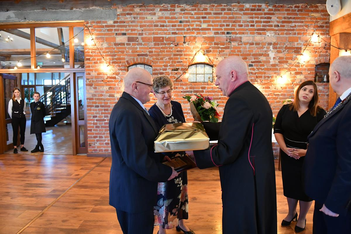 Cierpliwość, wyrozumiałość, ale i umiejętność wybaczania to cechy, którymi na pewno charakteryzują się pary, które w związku małżeńskim przeżyły co najmniej pół wieku. Z jubilatami, którzy obchodzili 50-, 55- i 65-lecie w Cedrowym Dworku dnia 8 listopada br. spotkali się wójt Janusz Goliński, Emilia Cyman, wiceprzewodnicząca Rady Gminy Cedry Wielkie oraz księża z terenu naszej gminy pod przewodnictwem ks. dziekana Janusza Mathea, którzy złożyli zacnymi jubilatom życzenia i wręczyli medale za długoletnie pożycie małżeńskie.