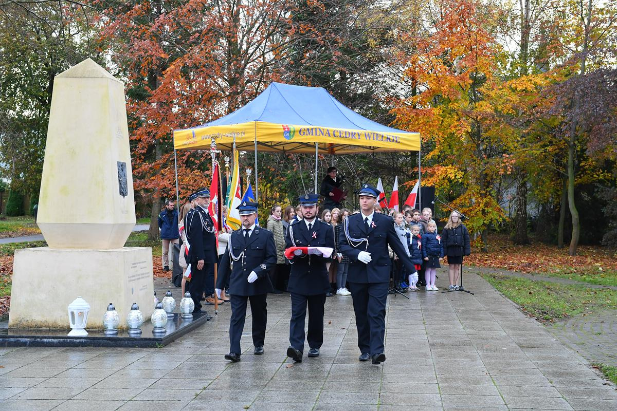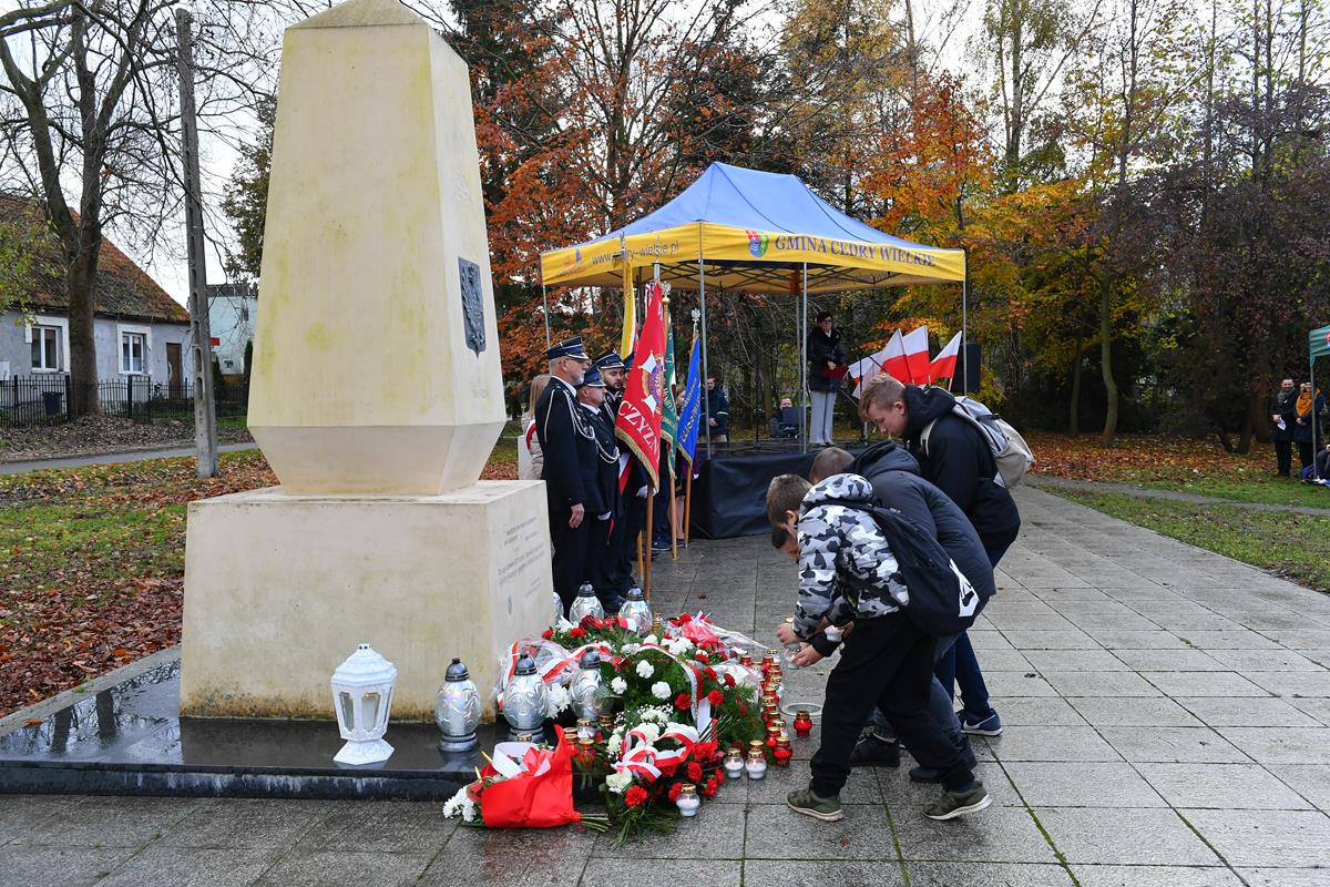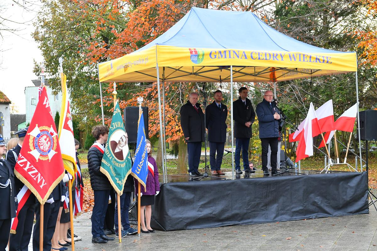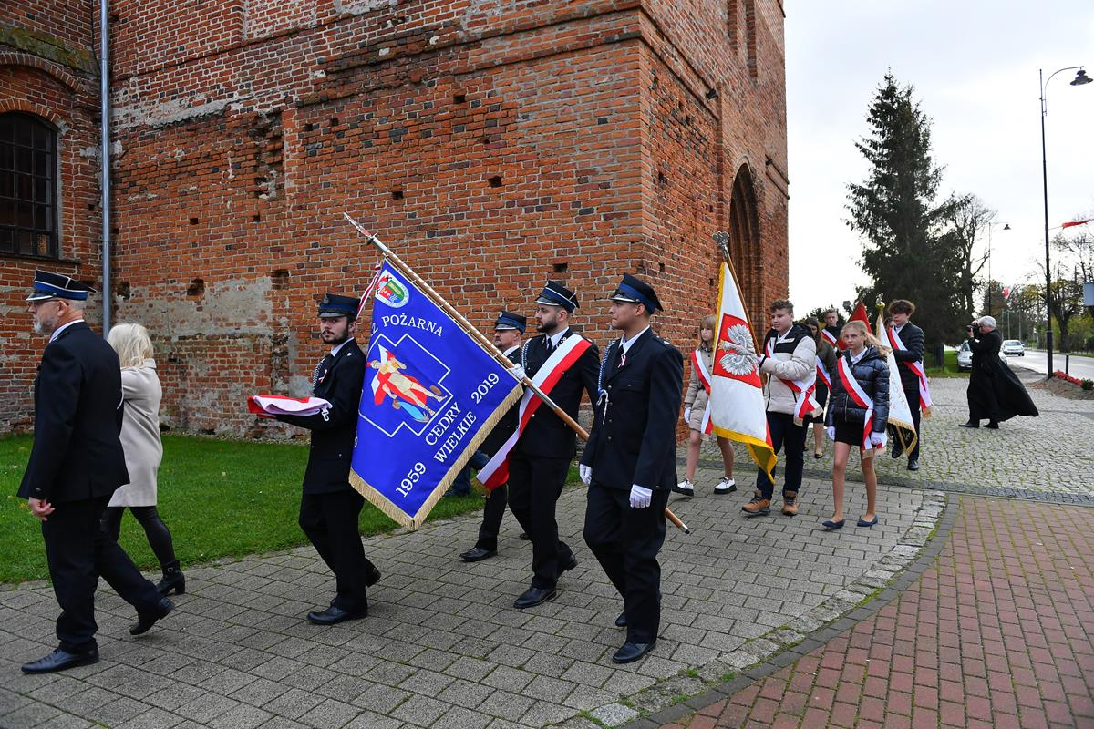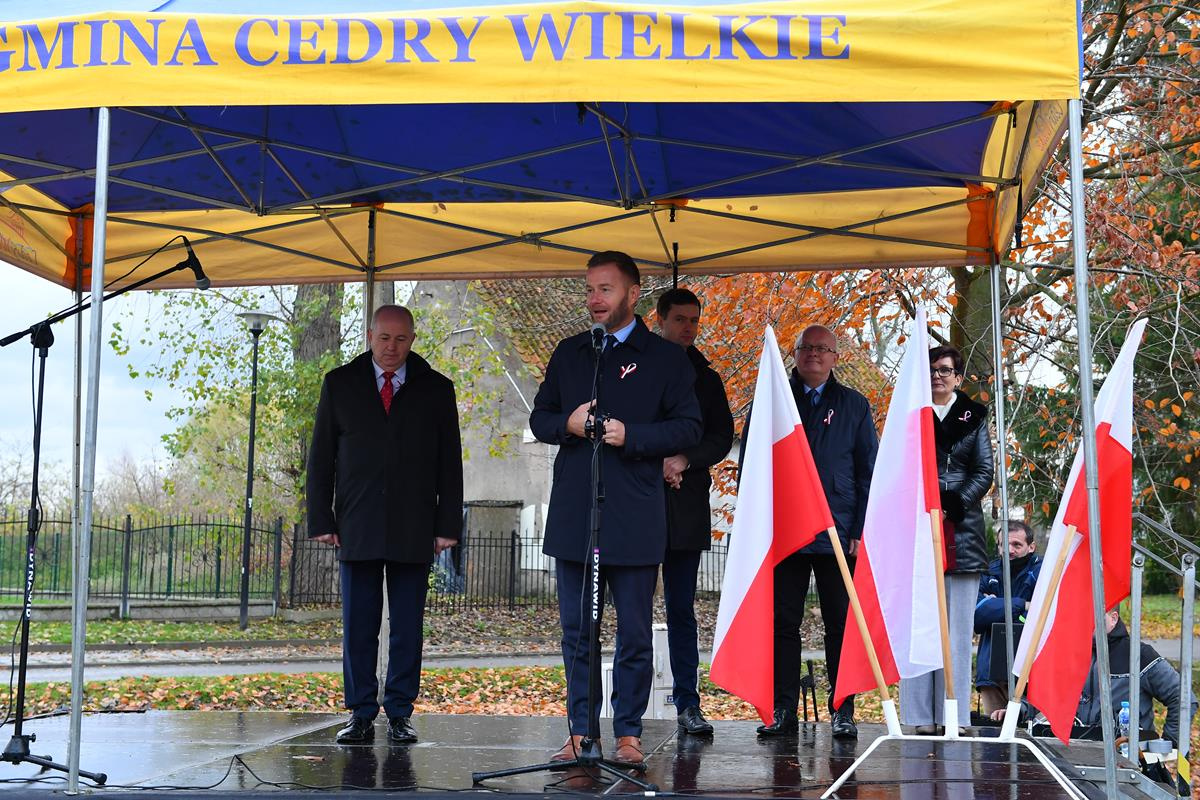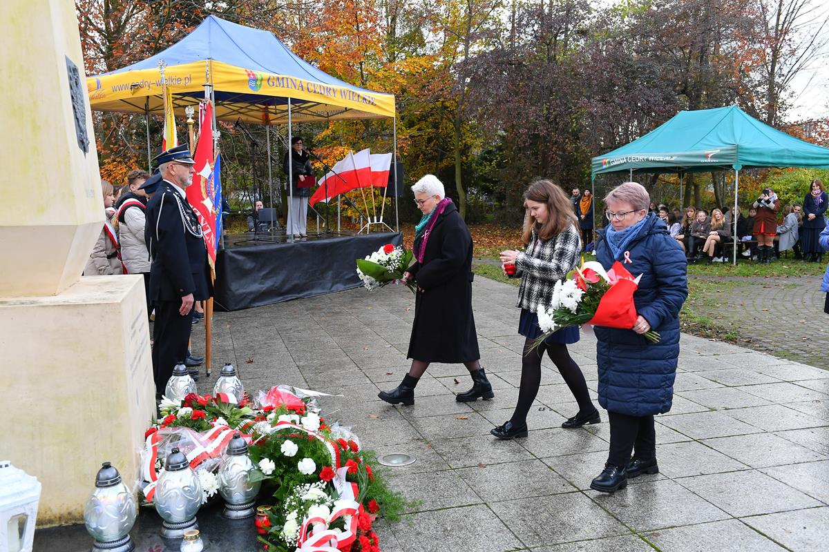 Obchody Święta Niepodległości w naszej gminie rozpoczęły się od mszy św. w kościele w Cedrach Wielkich. Po niej władze gminy oraz delegacje złożyły kwiaty pod pomnikiem 100-lecia Odzyskania Niepodległości. Nie zabrakło też okolicznościowych występów dzieci z naszych szkół. Z kolei w gminnej bibliotece chętni mogli obejrzeć wystawę Muzeum Narodowego Stutthof „Stutthof idzie” – ewakuacja więźniów obozu koncentracyjnego 25 styczeń – 12 marca 1945 r.