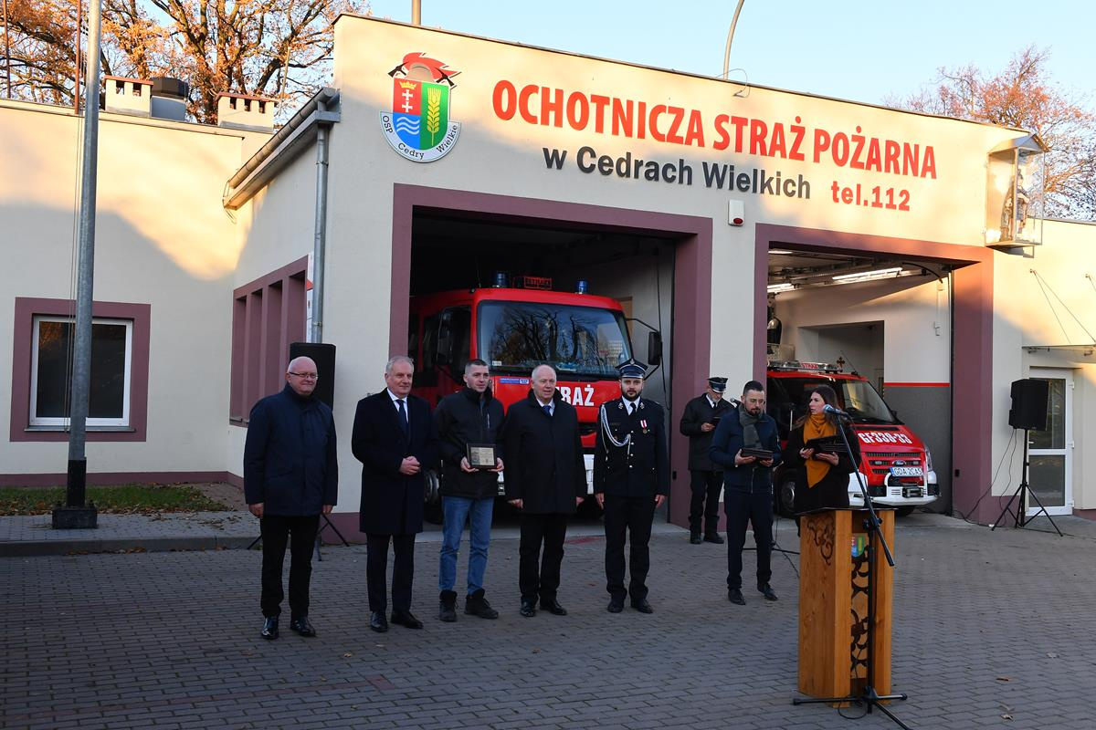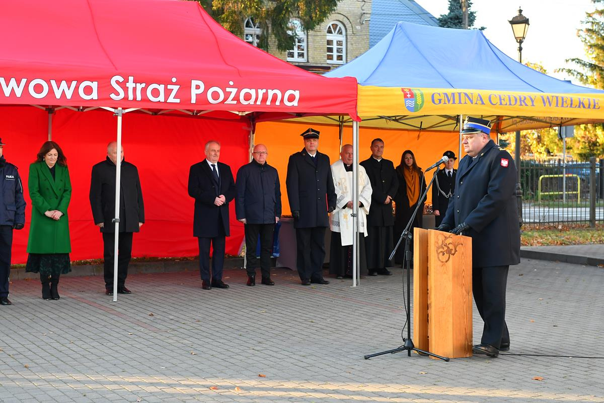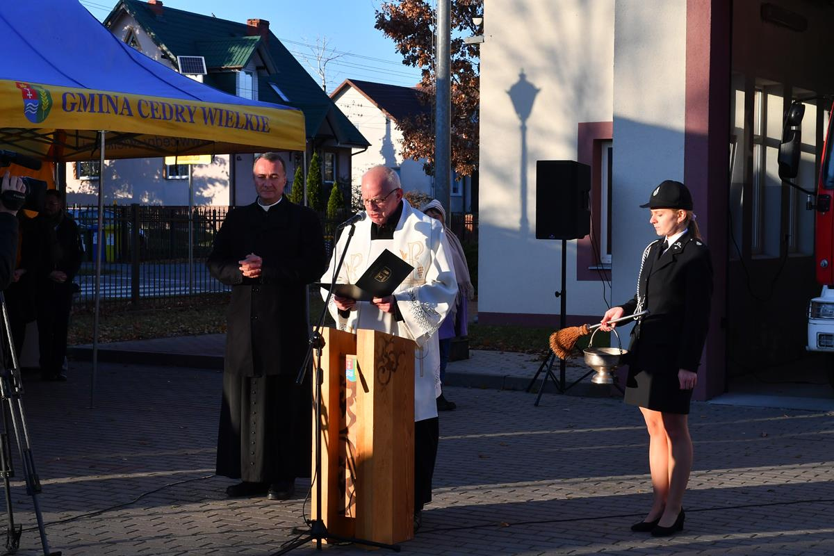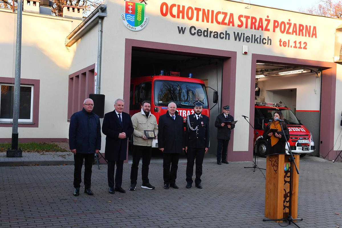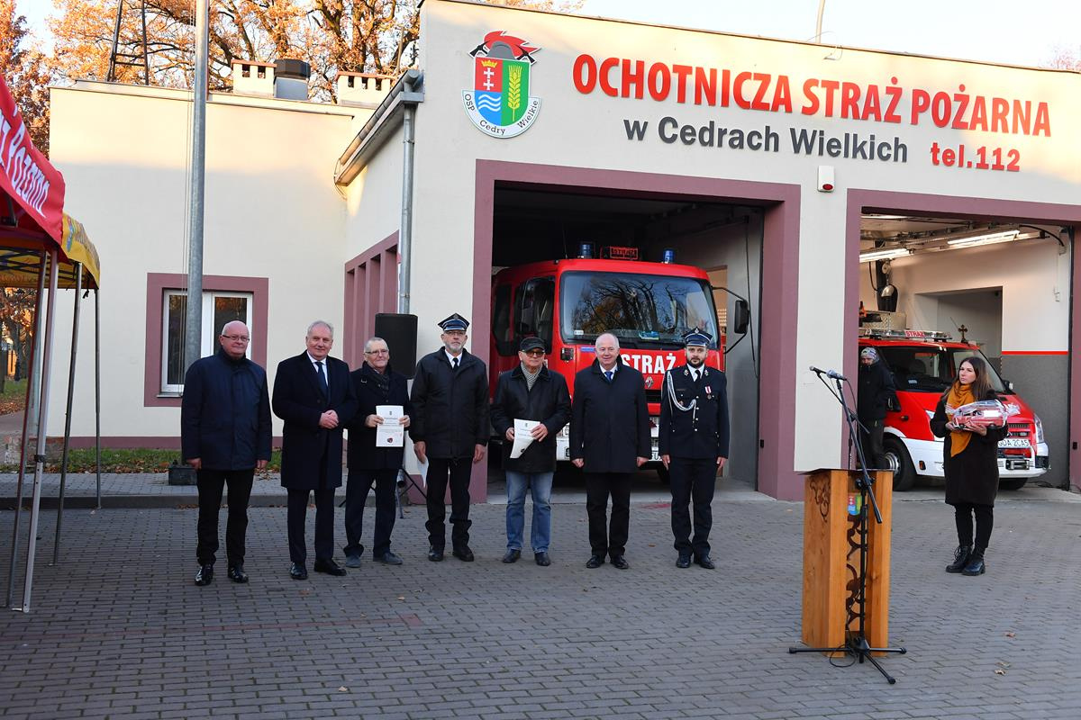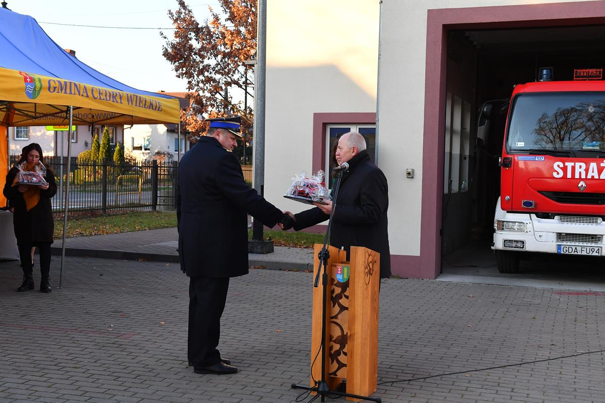 Zastępca Komendanta Wojewódzkiego Państwowej Straży Pożarnej w Gdańsku st. bryg. Dariusz Żywicki przyznał, że rzadko zdarza się tak, aby jednego dnia świętowano dwa ważne i kosztowne wydarzenia – w przypadku OSP Cedry Wielkie rozbudowę remizy i kupno nowego samochodu.