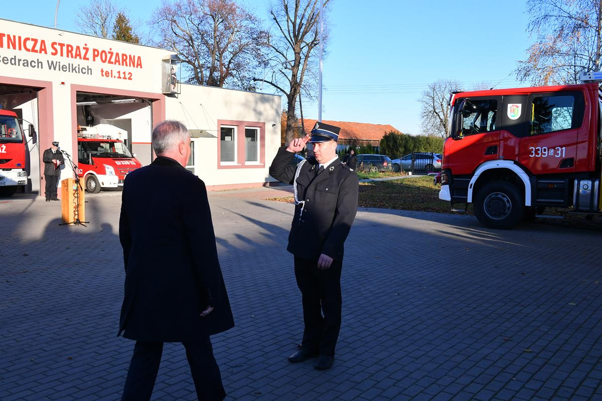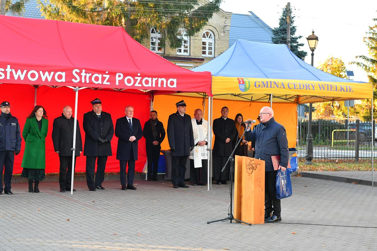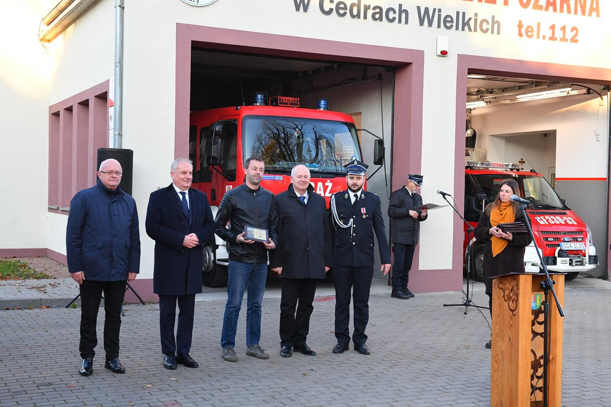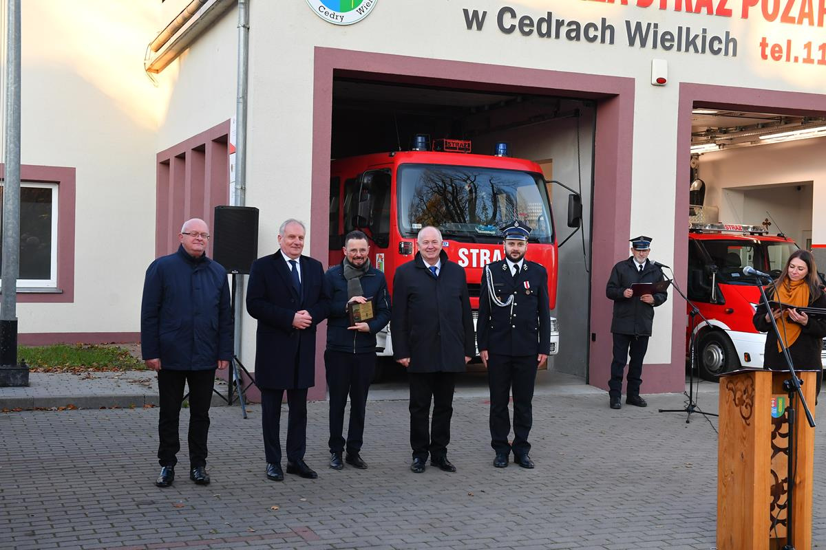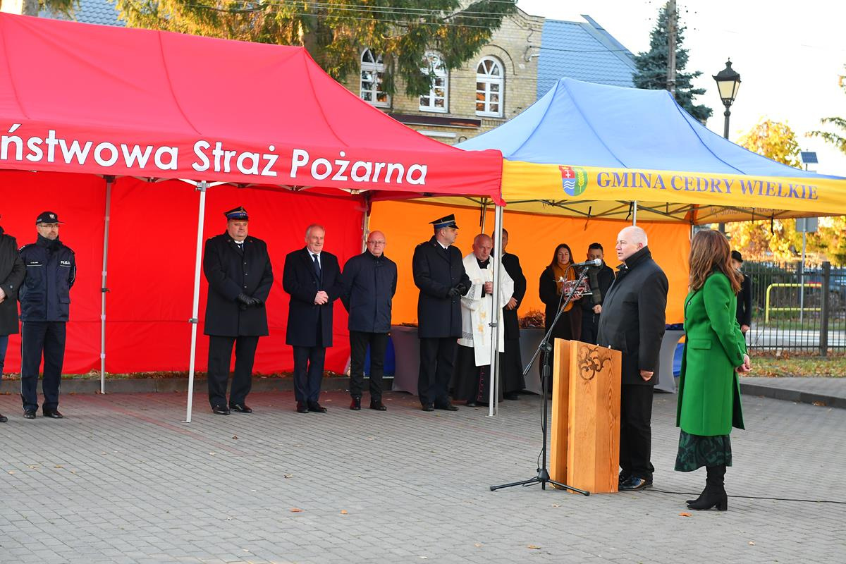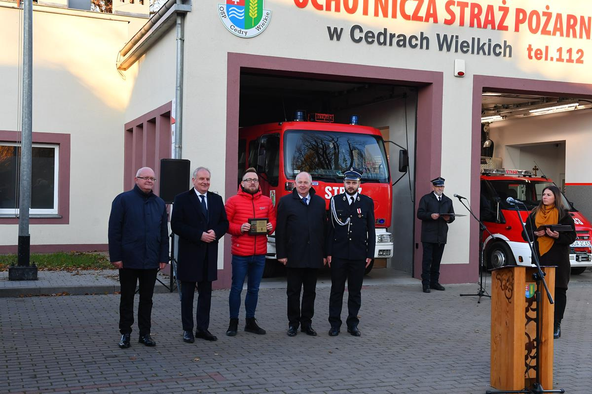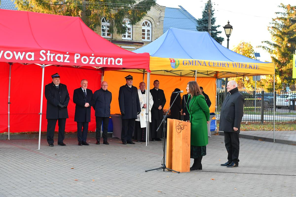Zastępca Komendanta Wojewódzkiego Państwowej Straży Pożarnej w Gdańsku st. bryg. Dariusz Żywicki przyznał, że rzadko zdarza się tak, aby jednego dnia świętowano dwa ważne i kosztowne wydarzenia – w przypadku OSP Cedry Wielkie rozbudowę remizy i kupno nowego samochodu.