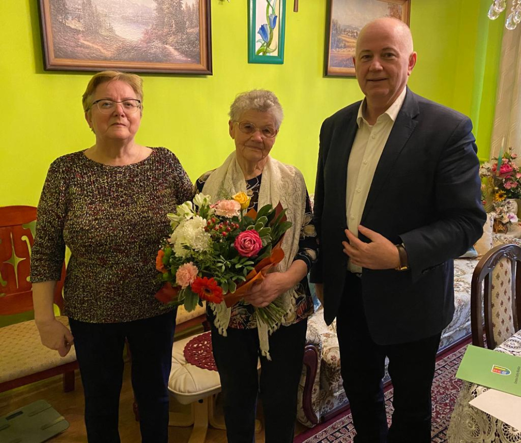 – Pani Stefania, jak wielu jej rówieśników, doświadczyła wielu dramatów II wojny światowej. Dziś to wspomnienia, którymi dzieli się z młodszym pokoleniem. Szanownej jubilatce gratuluję tak pięknego jubileuszu i życzę dobrego zdrowia na kolejne lata oraz miłości bliskich, którzy ją otaczają – życzy Janusz Goliński.