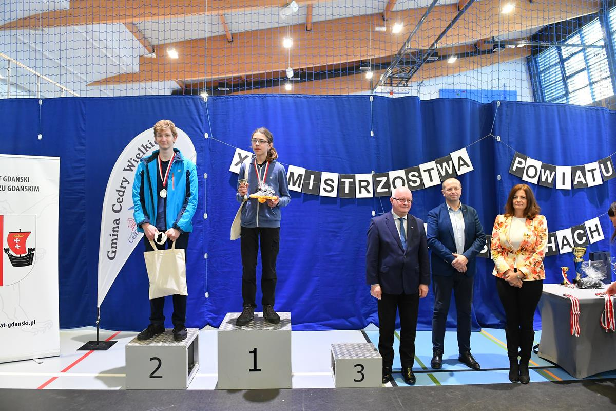 - Gospodarzom powiatowych mistrzostw dziękuję za wspaniałe przygotowanie zawodów. Nie pierwszy raz przekonaliśmy się, że Cedry Wielkie mogą być miejscem imprez na najwyższym poziomie. Cieszę się też, że królewska gra, jaką są szachy ma jeszcze liczne grono fanów. Najlepszym gratuluję i życzę kolejnych sukcesów – życzy Marian Cichon, starosta gdański, który wspólnie z Justyną Słowińską – przewodniczącą Rady Gminy Cedry Wielkie i Piotrem Jaśniewskim – zastępcą wójta, wręczał medale najlepszym.