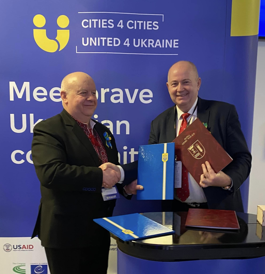 Wójt Janusz Goliński i Ivan Korud, mer ukraińskiego miasta Owrucz w obwodzie żytomierskim podpisali porozumienie dotyczące współpracy obu samorządów. Włodarze obu miejscowości spotkali się w Rzeszowie, gdzie odbyło się Forum World for Ukraine zorganizowane przez Szwedzkie Stowarzyszenie Lokalnej Administracji, miasto Lwów, miasto Rzeszów oraz USAID.