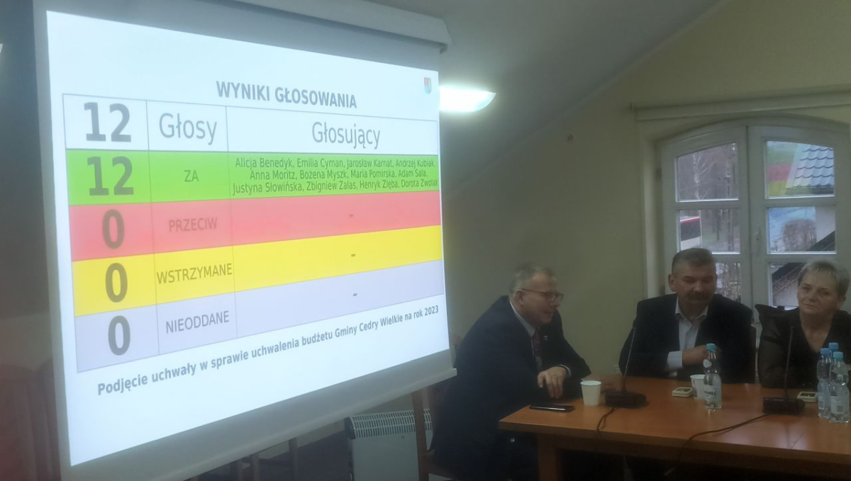 Na ostatniej w tym roku sesji radni gminy Cedry Wielkie jednogłośnie przyjęli budżet na 2023 rok.