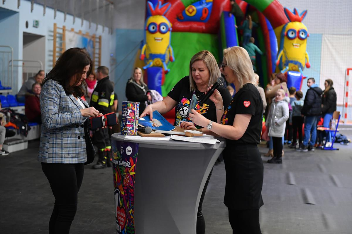 Wielki finał gminnego grania zorganizowano w Szkole Podstawowej w Cedrach Wielkich. Również tam można było wesprzeć akcję kupując chociażby ciasta na stoisku ze słodkościami, czy książkę na kiermaszu albo los na loterii fantowej. Liczył się każdy grosz. W tym roku przy gminnym sztabie pracowało ok. 30 wolontariuszy.