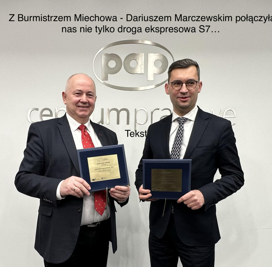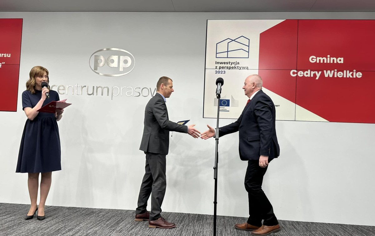 Wójt Janusz Goliński i Łukasz Żarna, dyrektor Żuławskiego Ośrodka Kultury i Sportu w Cedrach Wielkich odwiedzili Warszawę. Wyjazd do stolicy nie miał turystycznego charakteru. Panowie mieli przyjemność odebrać wczoraj tytuł laureata w konkursie „Inwestycja z perspektywą”, którego organizatorem był Serwis Samorządowy PAP.