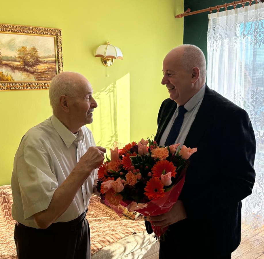 Wśród wielu gości, którzy odwiedzili jubilata znalazł się również wójt Janusz Goliński.
