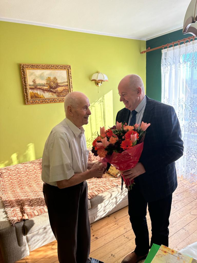 - Cieszę się, że zastałem Pana Czesława w dobrym zdrowiu. To kolejny dowód na to, że przedwojenne roczniki mają się bardzo dobrze. Korzystając z okazji raz jeszcze życzę mieszkańcowi Cedrów Wielkich tak dobrego zdrowia w kolejnych latach jego życia oraz radości z efektów, które na pewno przyniesie praca w ukochanym ogrodzie – życzy Janusz Goliński.