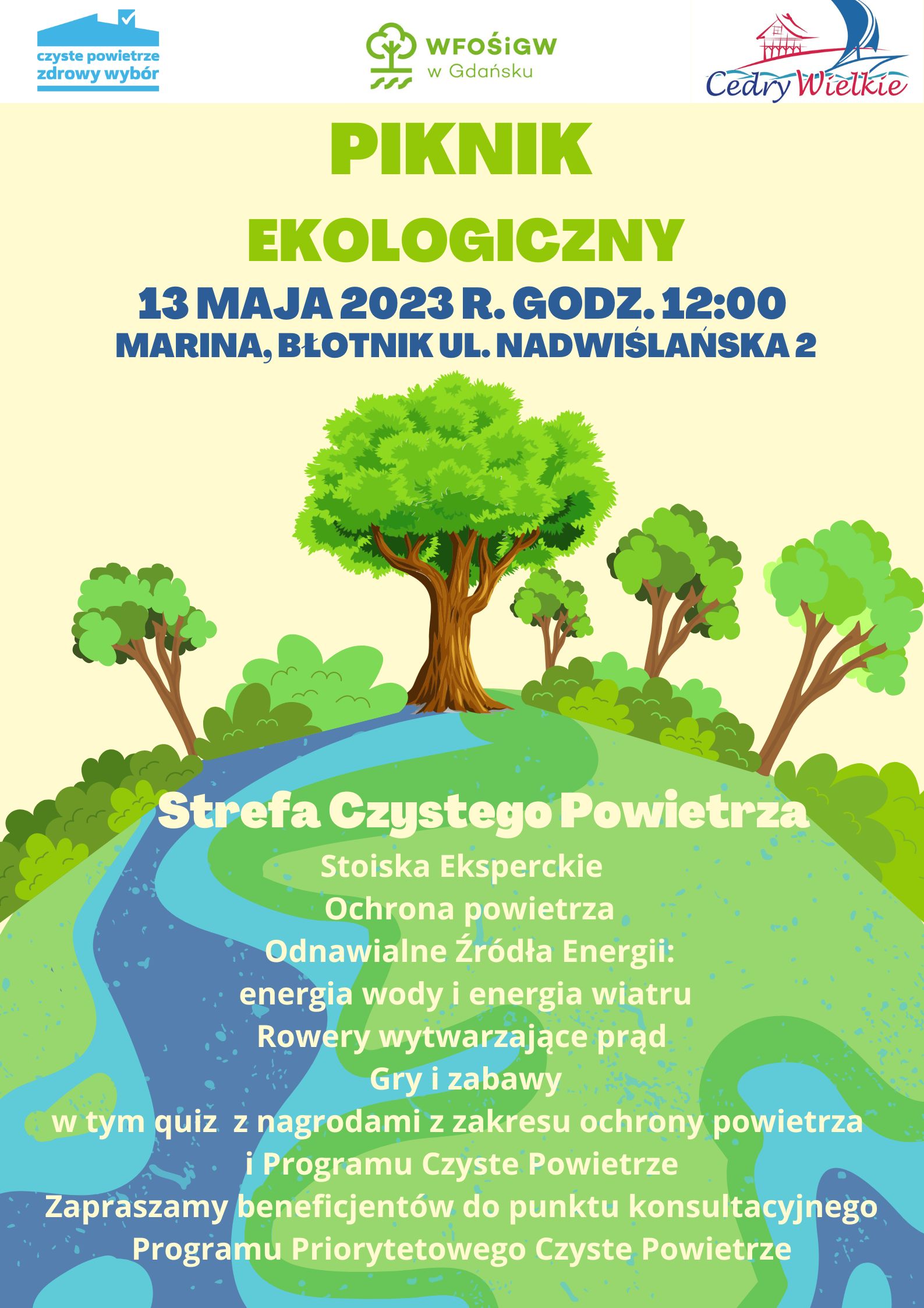 Na pikniku odwiedzić będzie można stoiska edukacyjne z OZE, energią wiatru i wody. Nie zabraknie gier i quizów z nagrodami, których głównymi tematami będą oczywiście kwestie związane z ochroną środowiska i Programem „Czyste Powietrze”.