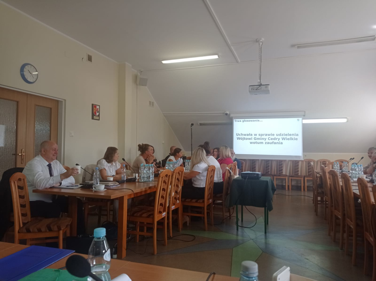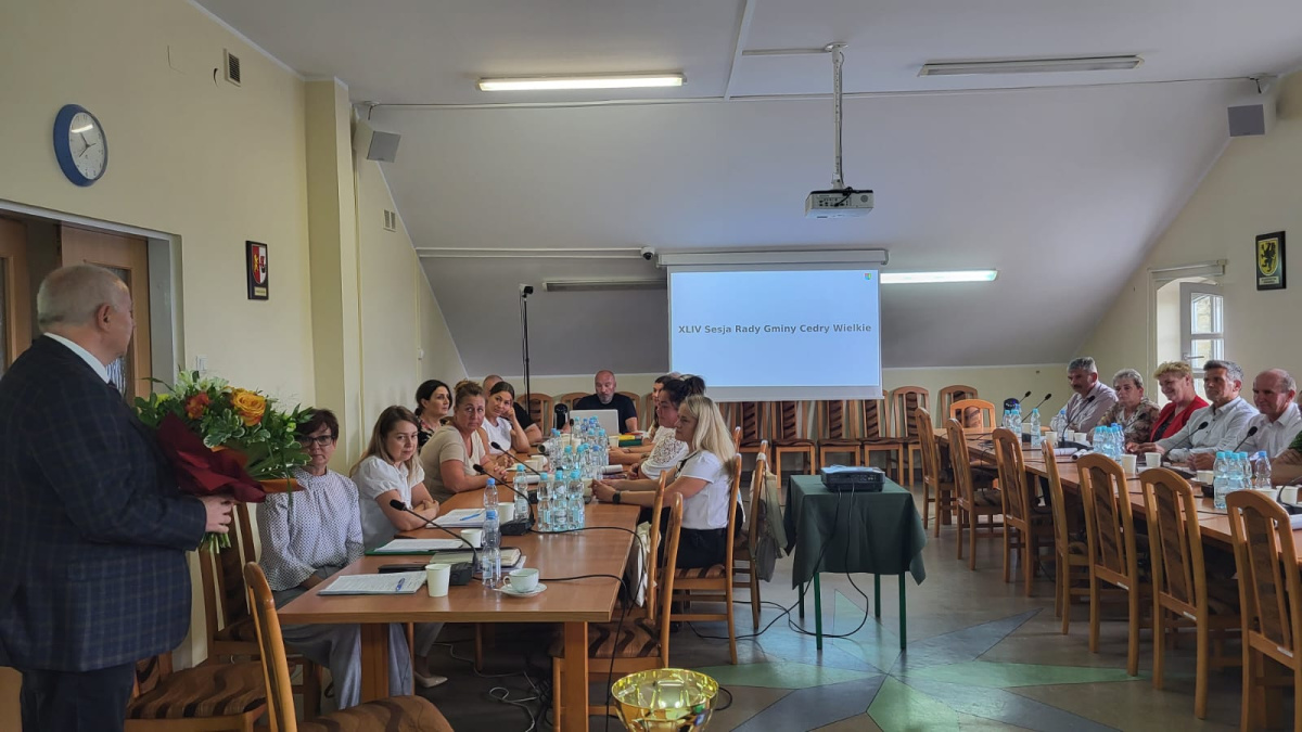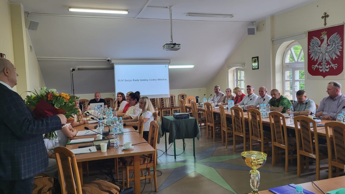 Podczas sesji uroczyście powitani zostali nowi sołtysi, którzy na rzecz swoich małych ojczyzn pracować będę przez następne 4 lata. Janusz Goliński i Justyna Słowińska, przewodnicząca Rady Gminy Cedry Wielkie wręczyli wszystkimi legitymacje, życząc jednocześnie owocnej pracy w ciężkiej służbie sołtysa.