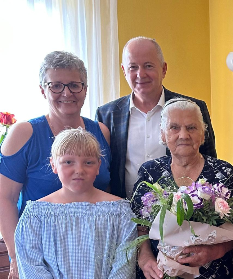 - Dziękuję za kolejne miłe spotkanie z Panią Janiną i jej rodziną. Cieszę się, że zastałem ją w tak dobrym zdrowiu, co może tylko być dowodem na fakt, że przedwojenne rocznik ulepione są naprawdę z najlepszej gliny. Korzystając z okazji raz jeszcze życzę zacnej jubilatce zdrowia, pogody ducha i miłości najbliższych. Do zobaczenia za rok… - życzy Janusz Goliński.