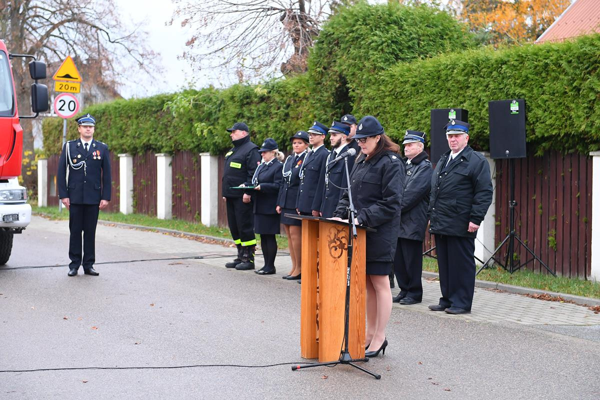 - Cieszymy się z posiadanego sprzętu i umundurowania. Przy pracy strażaka dobre wyposażenie jest niezbędne. Wierzę, że na nowym wozie nie zakończy się pomoc dla naszej jednostki, ponieważ potrzeby strażaków są duże – zauważyła Justyna Słowińska, przewodnicząca Rady Gminy Cedry Wielkie, która jest również strażaczką w Koszwałach.