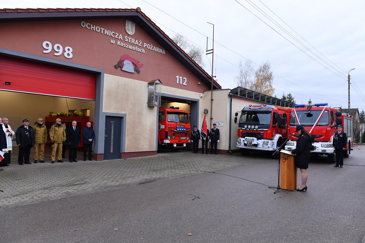 W uroczystości nie mógł uczestniczyć prezes OSP Koszwały Michał Rychlicki, który w specjalnym liście skierował kilka zdań do zebranych gości: „Pojazd ten pozwoli na podniesienie poziomu bezpieczeństwa mieszkańców oraz druhów biorących udział w akcjach ratowniczych. Druhowie nasi wykazują pełną gotowość i zdecydowaną postawę w realizacji trudnych zadań. Biorąc pod uwagę fakt, że z roku na rok zmienia się intensywność i rodzaj zagrożeń, które stawiają przed nami nowe wyzwania, wysiłek, który podejmujemy w ratowaniu ludzi i ich mienia jest zawsze źródłem satysfakcji i powodem do dumy. Musimy jednak pamiętać, że niesienie pomocy bez niezbędnego sprzętu nie byłoby możliwe. Dziękuję wszystkim, którzy przyczynili się do pozyskania nowego wozu i zapewniam, że otrzymany samochód podniesie sprawność operacyjną nasze jednostki” – napisał druh Michał Rychlicki.
