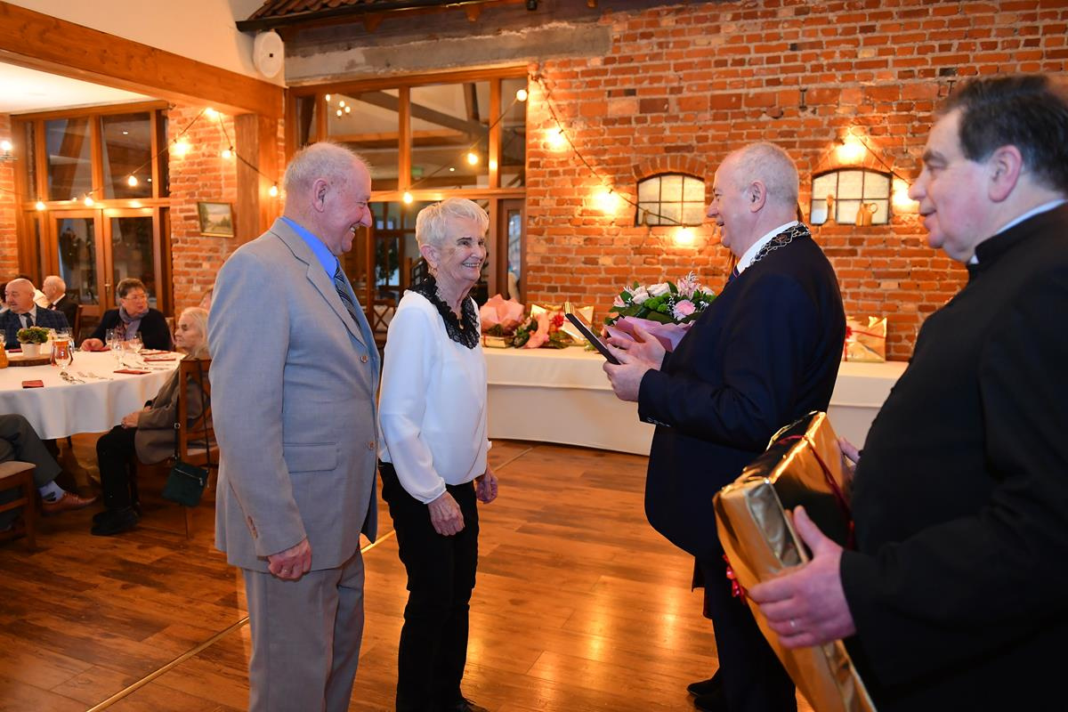 - Serdecznie gratuluję i zarazem chylę czoła przed parami, które przeszły przez pięć dziesięcioleci pełnych wzlotów i upadków, dzieląc ze sobą radości i trudności życia. To właśnie nasi goście przez co najmniej pół wieku wspólnie tworzyli historię swoich rodzin. Na pewno każdy z nich pamięta wyznanie miłości i wzajemnego szacunku, które sobie wzajemnie składali. Wszystkim jubilatom życzę zdrowia i kolejnych lat pełnych szczęścia i miłości – życzy wójt Janusz Goliński.