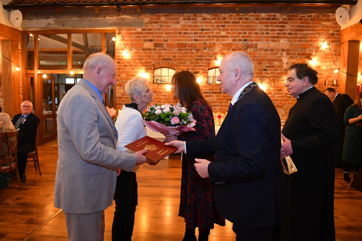 Wójt Goliński oraz Justyna Słowińska, przewodnicząca Rady Gminy Cedry Wielkie małżeństwom, które mają co najmniej 50-letni staż małżeński wręczyli, nadane przez Prezydenta RP, Medale na długoletnie pożycie małżeńskie.