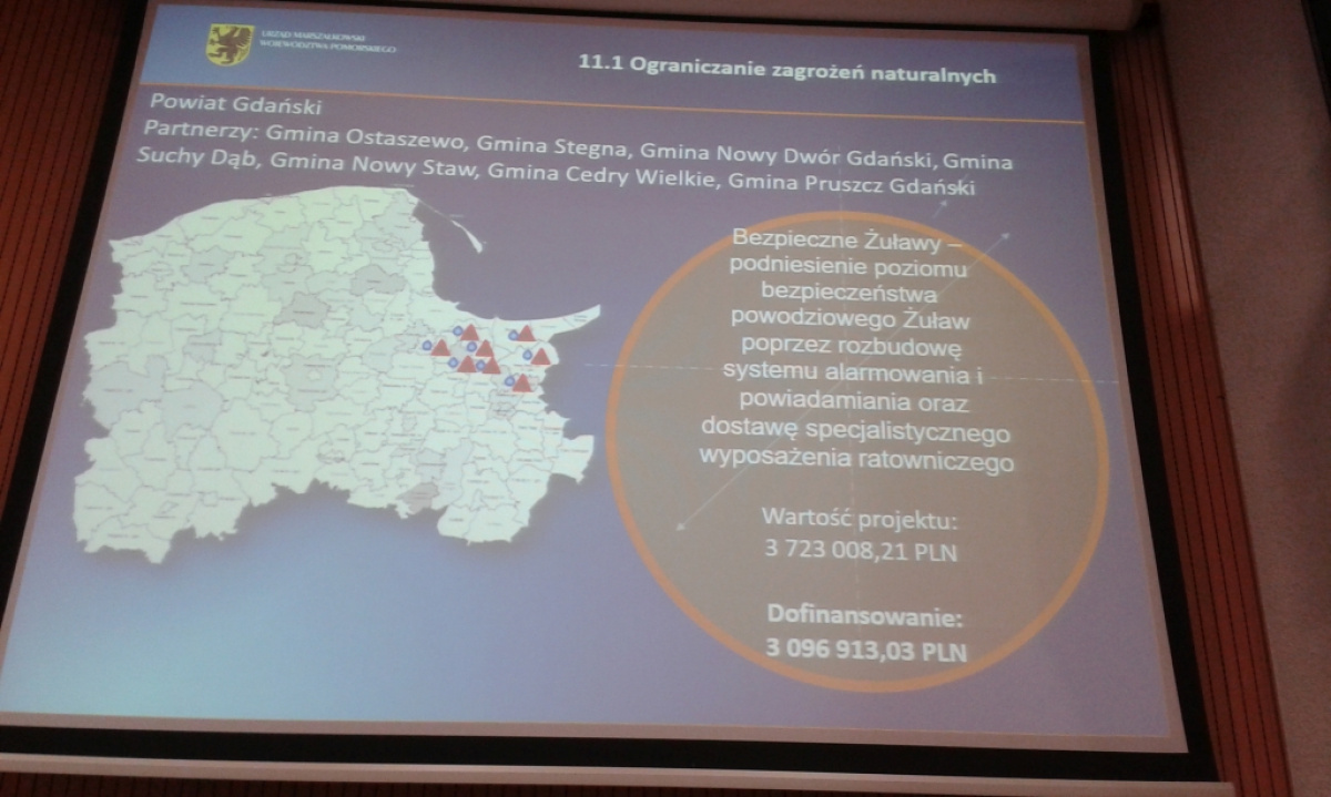 W piątek 18 sierpnia br. marszałkowie Mieczysław Struk, Wiesław Byczkowski i Ryszard Świlski oraz Stefan Skonieczny Starosta Powiatu Gdańskiego podpisali umowę o dofinansowanie Projektu ,,Bezpieczne Żuławy - podniesienie poziomu bezpieczeństwa powodziowego Żuław poprzez rozbudowę systemu alarmowania i powiadamiania oraz dostawę specjalistycznego wyposażania ratowniczego” w ramach Regionalnego Programu Operacyjnego Województwa Pomorskiego na lata 2014-2020.