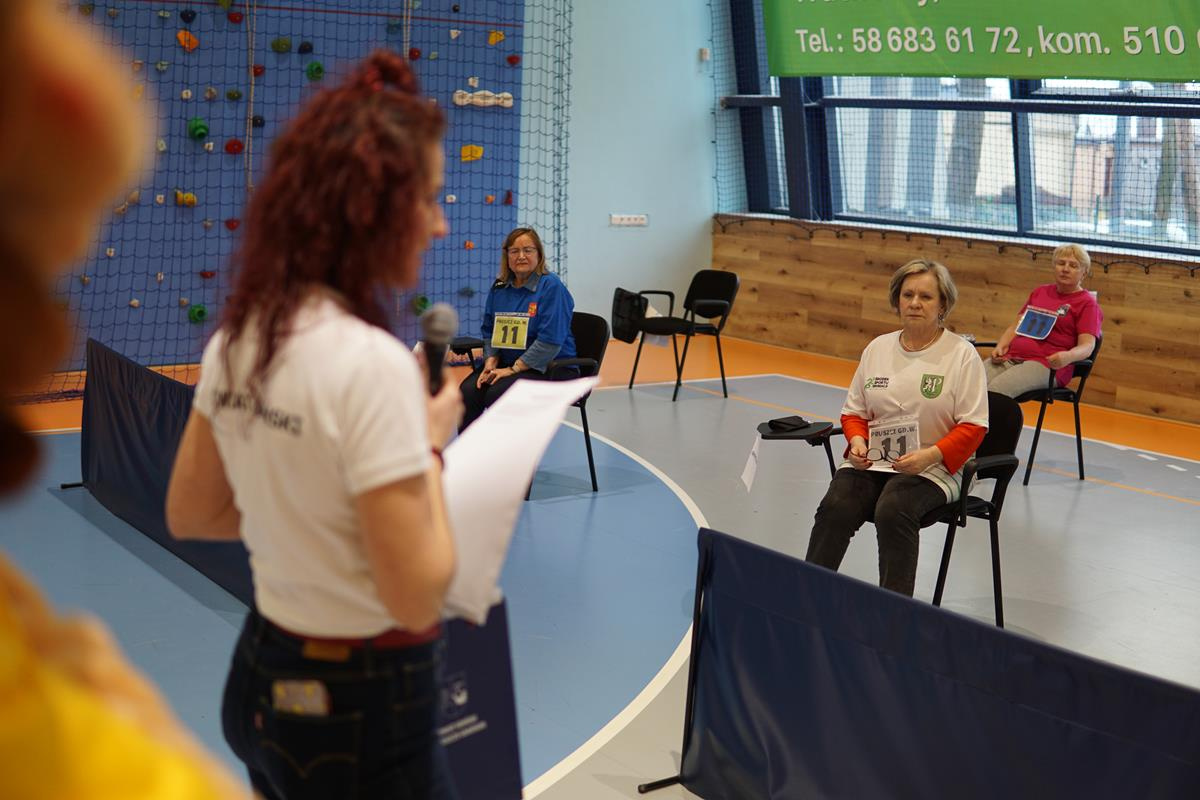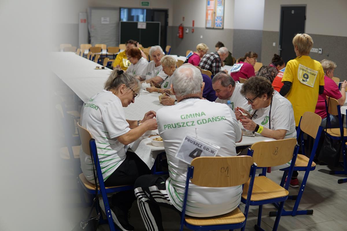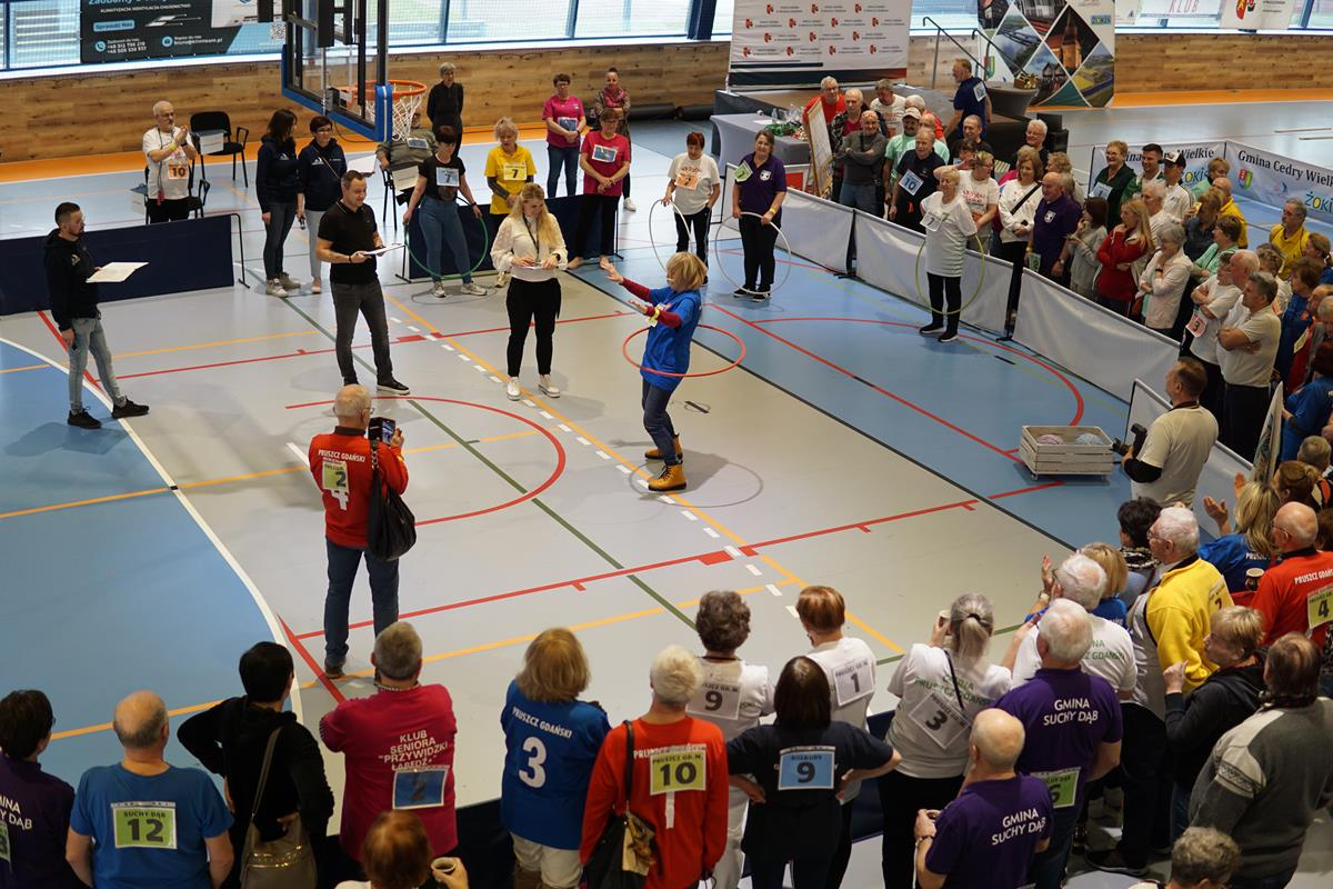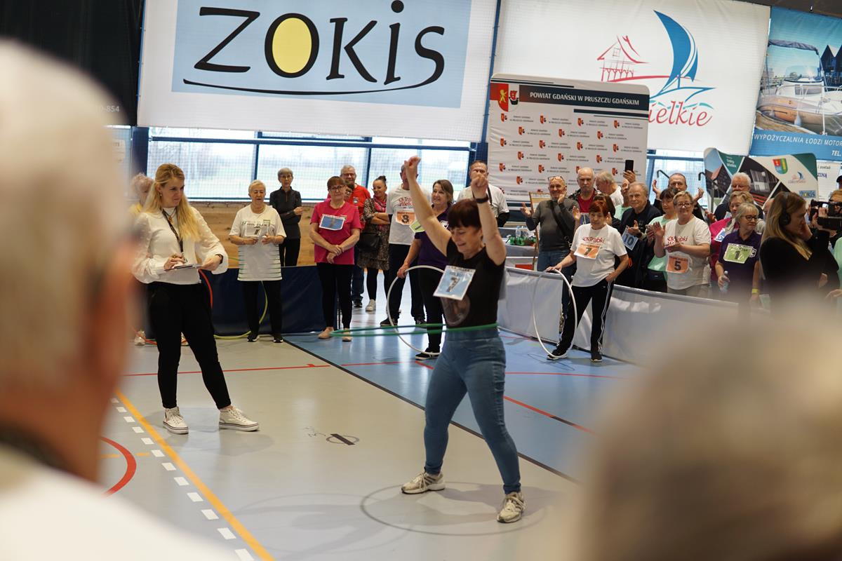 Seniorzy rywalizowali w różnorodnych konkurencjach, które wymagały nie tylko sprawności fizycznej, ale również wiedzy i umiejętności. Uczestnicy zmagań rywalizowali w: rzucie kłębkiem do celu, rowerowym torze przeszkód, strzale piłką do unihokeja, kręceniu hulahop, skakaniu na skakance i teście wiedzy o powiecie gdańskim.