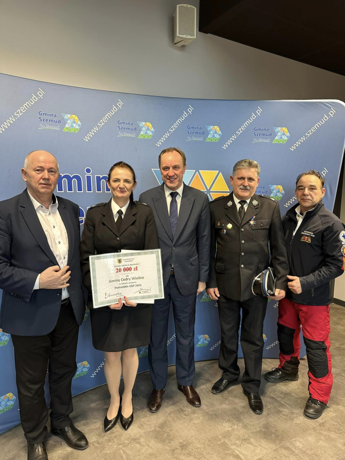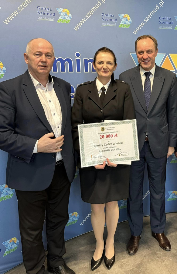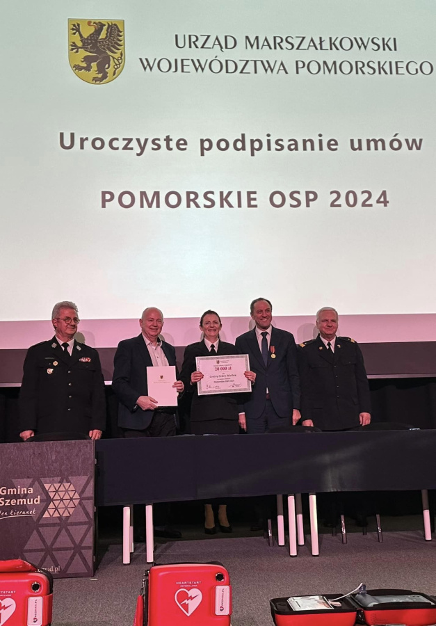 Wczoraj w Szemudzie odbyła się uroczystość, podczas której marszałek województwa pomorskiego Mieczysław Struk i wójtowie gmin podpisywali umowy na dofinansowanie zakupu sprzętu dla Ochotniczych Straży Pożarnych. Pieniądze w wysokości 20 tys. zł z Samorządu Województwa Pomorskiego, w ramach programu „Pomorskie OSP 2024” otrzymała również nasza gmina. W uroczystości na Kaszubach uczestniczyli wójt Janusz Goliński i druhna OSP Koszwały – Justyna Słowińska, przewodnicząca Rady Gminy Cedry Wielkie.