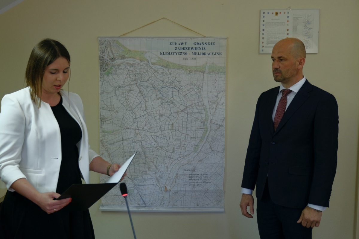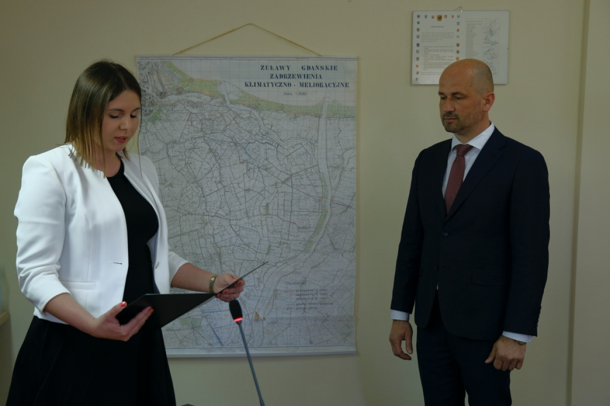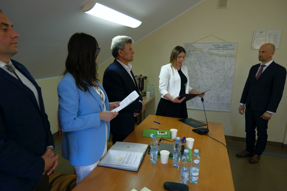 Ślubowanie złożył również Dawid Pietrucha, dla którego będą to pierwsze kroki na stanowisku wójta gminy Cedry Wielkie.