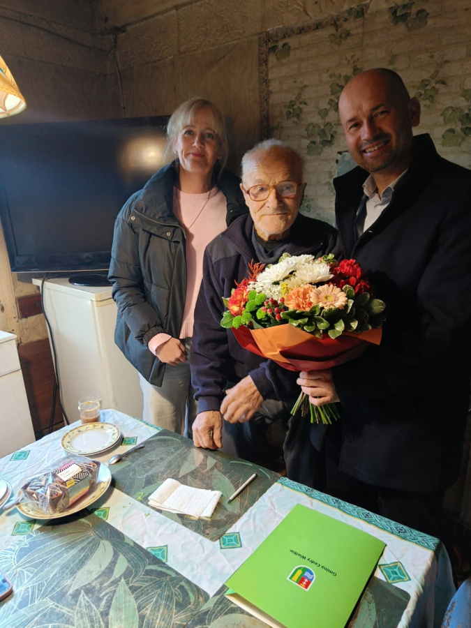 Mieszkaniec Trzciniska lubi spotkać się z ludźmi, by rozmawiać o tym, co dzieje się w gminie. Nic więc dziwnego, że z przyjemnością spotkał się – oczywiście przy okazji swoich urodzin – z wójtem Dawidem Pietruchą.