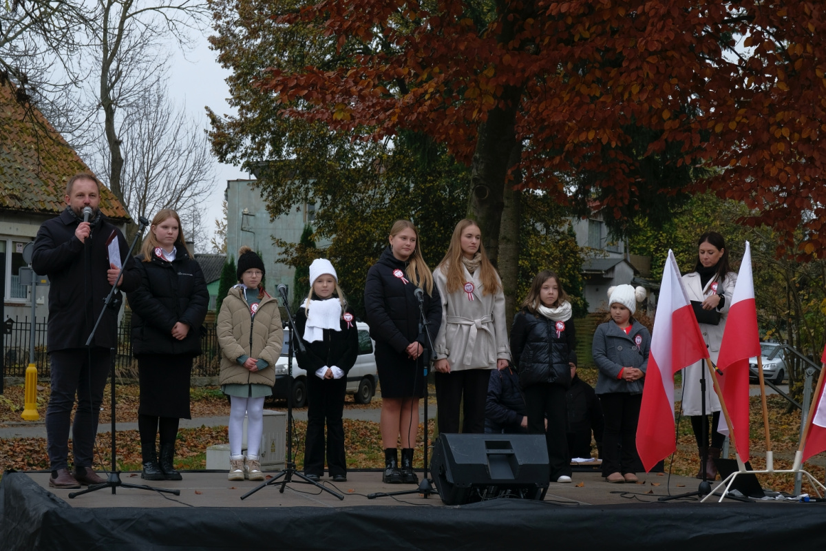 Podczas uroczystości nie zabrakło akcentów kulturalnych. Na scenie wystąpili mali artyści z sekcji „Wokal Kids” oraz „Warsztatowni” Żuławskiego Ośrodka Kultury i Sportu w Cedrach Wielkich pod kierunkiem Przemysława Radziszewskiego z utworami patriotycznymi.