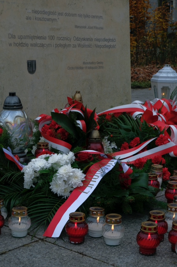 Obchody Narodowego Święta Niepodległości są pełne symbolicznych wydarzeń. W miastach, miasteczkach i wsiach w całym kraju odbyły się apele, rekonstrukcje historyczne oraz wydarzenia artystyczne, które przypominają o tym wydarzeniu. Nie inaczej było w Cedrach Wielkich, gdzie uroczystości rozpoczęły się od mszy świętej, po której złożono kwiaty pod pomnikiem „100-lecia Niepodległości”.