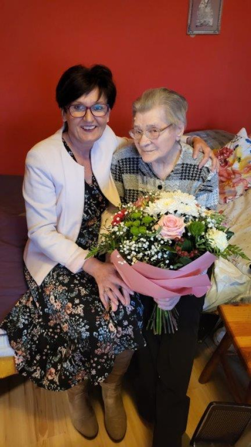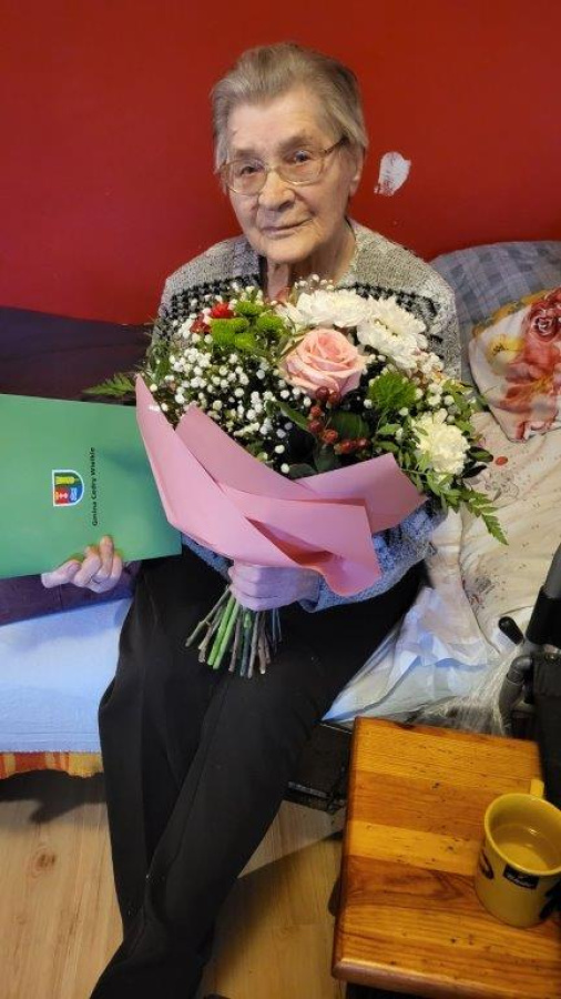 Odwiedziny seniorów, którzy świętują co najmniej 90. urodziny to stały punkt w kalendarzu wójta naszej gminy. Tym razem Panią Teresę Niciejewską, która mieszka w Trutnowach, odwiedził Dawid Pietrucha. Jubilatka świętowała w tym roku 91. urodziny.