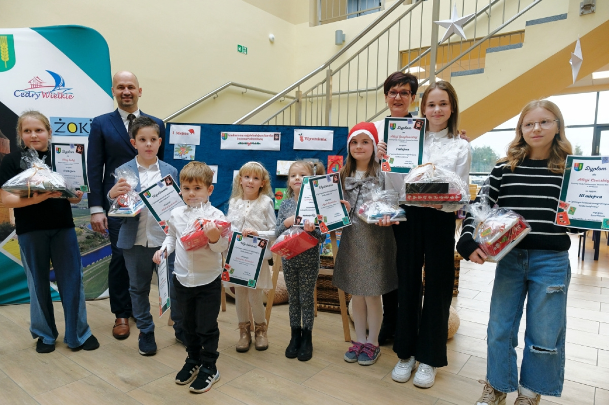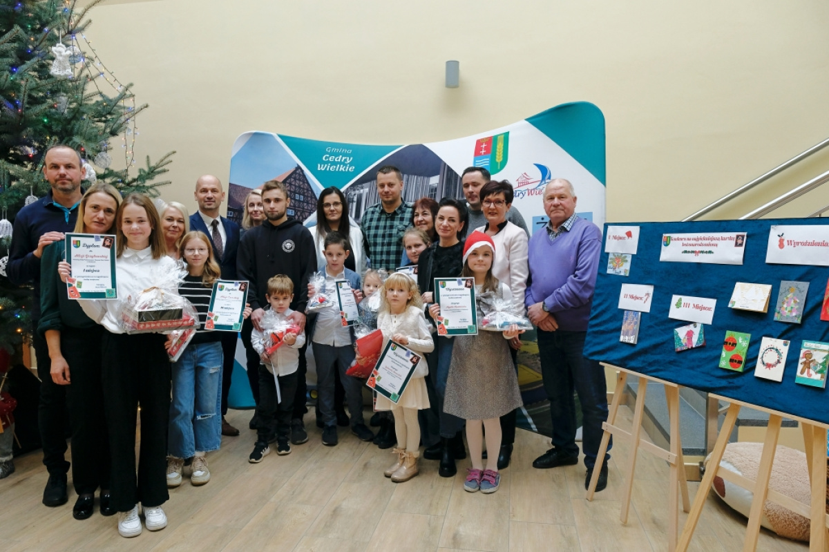 W urzędzie gminy odbyło się uroczyste podsumowanie i wręczenie nagród w pierwszej edycji konkursu na najpiękniejszą kartkę świąteczną, zorganizowanego przez wójta Gminy Cedry Wielkie. Konkurs skierowany był do dzieci z przedszkoli, szkół podstawowych oraz wychowanków Ośrodka Rewalidacyjno-Wychowawczego, a jego celem było rozwijanie kreatywności najmłodszych oraz podtrzymywanie tradycji świątecznych.