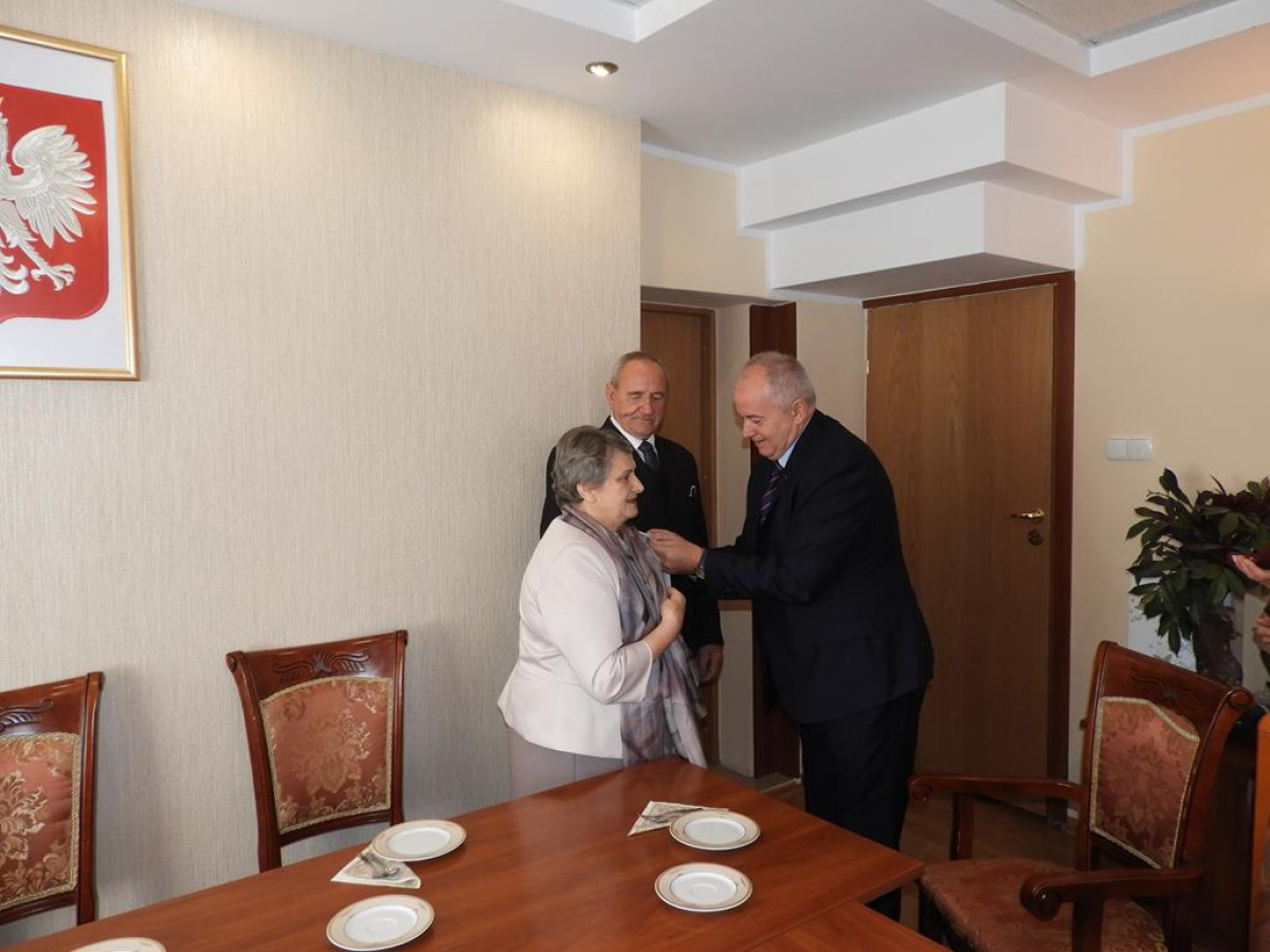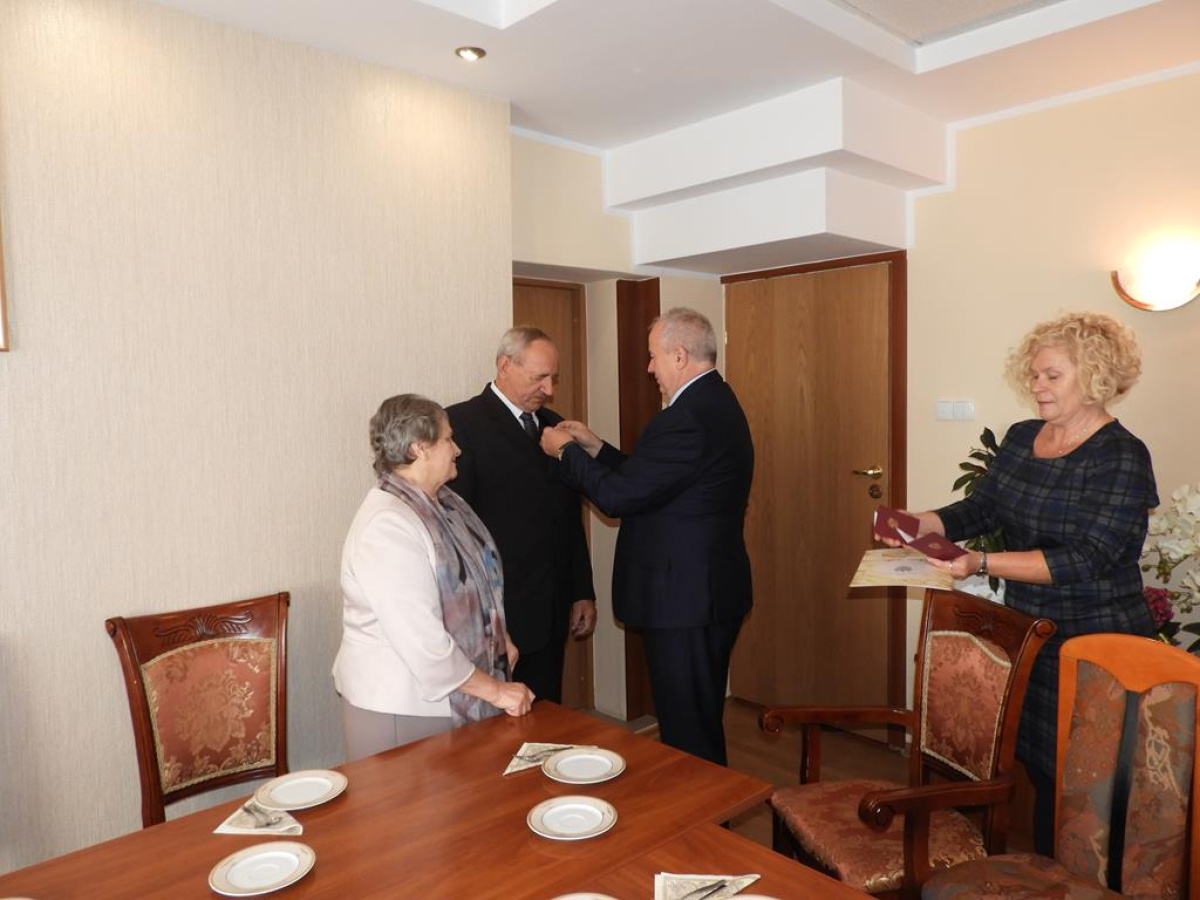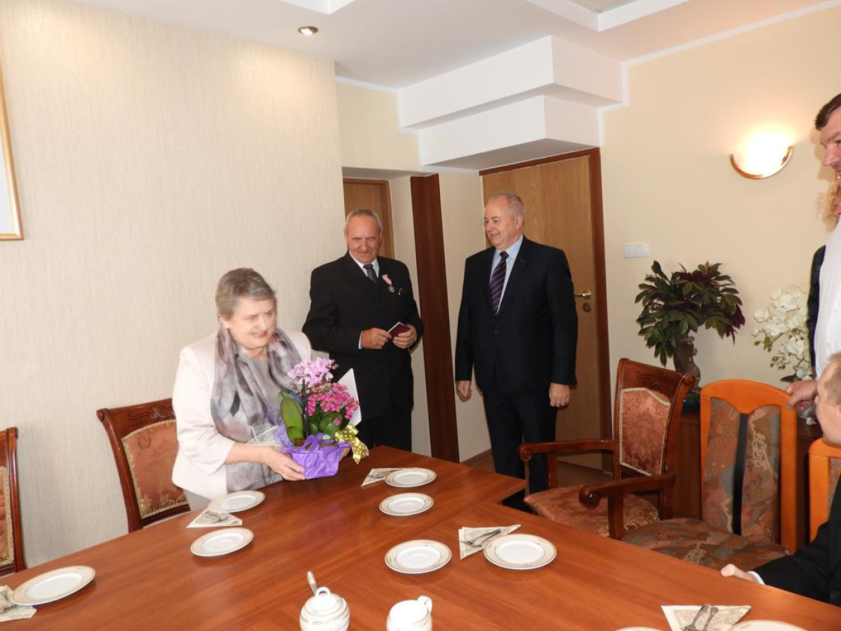 Małżonkom wręczone również zostały pamiątkowe legitymacje, upominek oraz bukiet kwiatów. Po oficjalnej części uroczystości, wzniesiony został toast za pomyślność Jubilatów oraz wykonano wspólne, pamiątkowe zdjęcie. Państwu Wołkowicz raz jeszcze gratulujemy 50-lat pożycia małżeńskiego oraz życzymy dużo zdrowia i długich lat życia w radości i pomyślności.