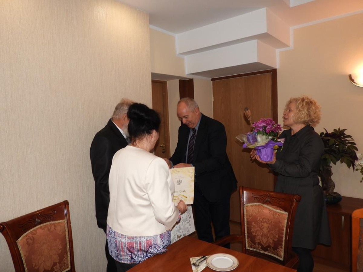 Jubilaci wraz z serdecznymi życzeniami otrzymali bukiet kwiatów oraz prezent. Spotkanie odbyło się w sympatycznej atmosferze, w czasie której Jubilaci wracali wspomnieniami do wspólnie przeżytych 50 lat. Raz jeszcze gratulujemy wspaniałego Jubileuszu.