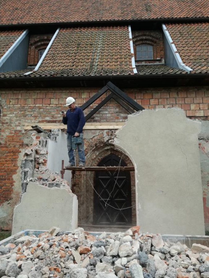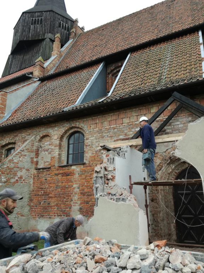 Dokumentacje zostały złożone w październiku br. w Starostwie Powiatowym w Pruszczu Gdańskim w celu uzyskania pozwolenia na realizację robót budowlanych przy tych obiektach. Po uzyskaniu pozwoleń na budowę Wykonawca przystąpi do realizacji głównych prac budowlanych. Do chwili obecnej przy kościołach w Cedrach Wielkich oraz w Trutnowach zostały wykonane prace izolacyjne, natomiast dla kościoła w Kiezmarku ustalono zakres robót dodatkowych, które są niezbędne do zabezpieczenia kościoła przed dalszymi uszkodzeniami oraz mają na celu zabezpieczenie witraży, które zostaną poddane renowacji w ramach projektu.