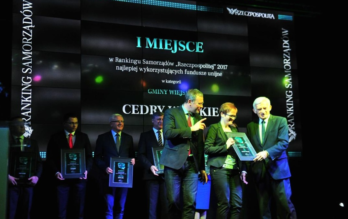 Gminę Cedry Wielkie reprezentowali: Pani Magda Woźniak - inspektor ds. funduszy unijnych oraz Pan Łukasz Żarna - Dyrektor Żuławskiego Ośrodka Kultury i Sportu w Cedrach Wielkich. Nagrodę z rąk prof. Jerzego Buzka odebrała Pani Magda Woźniak – inspektor ds. funduszy unijnych w Urzędzie Gminy w Cedrach Wielkich.