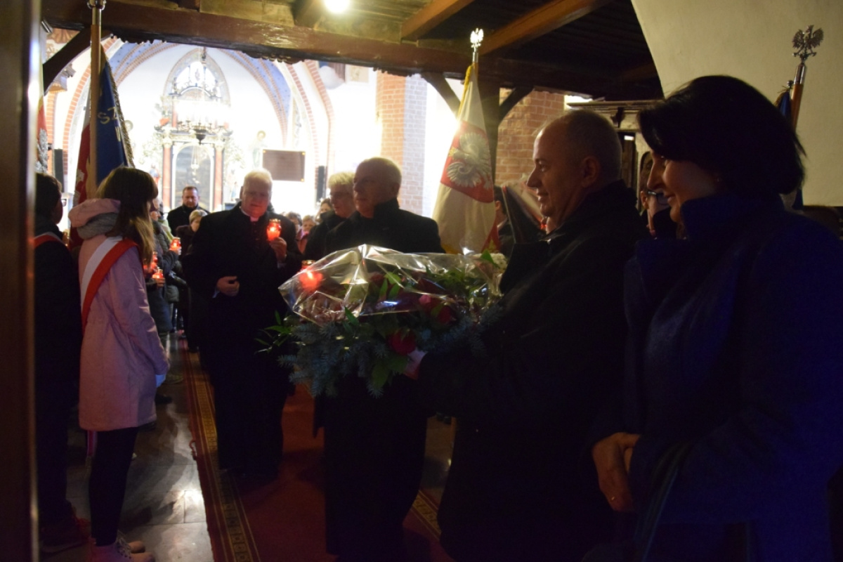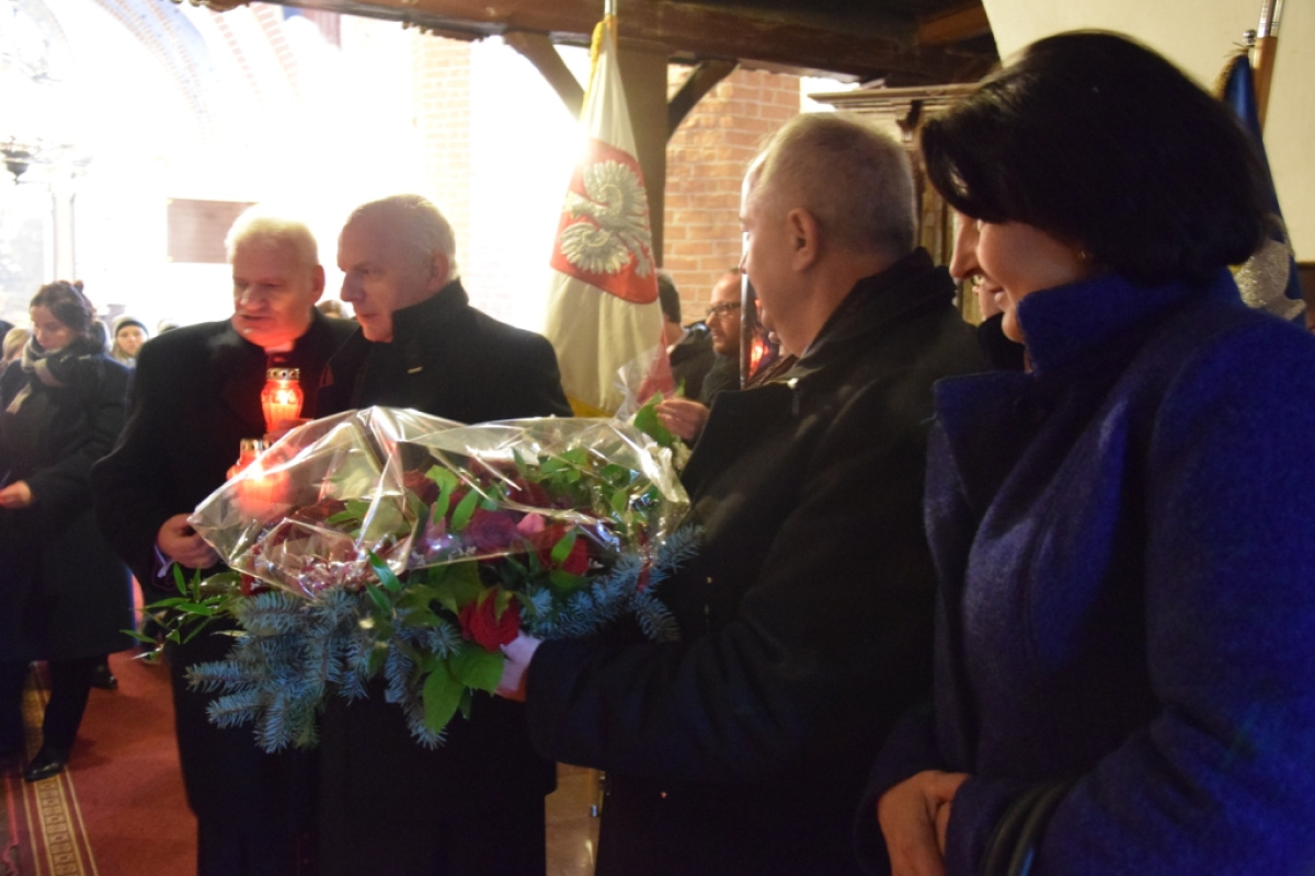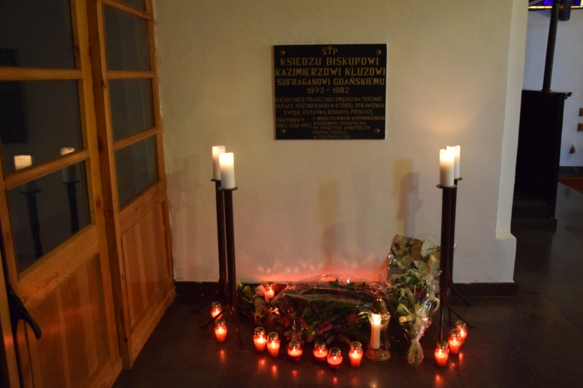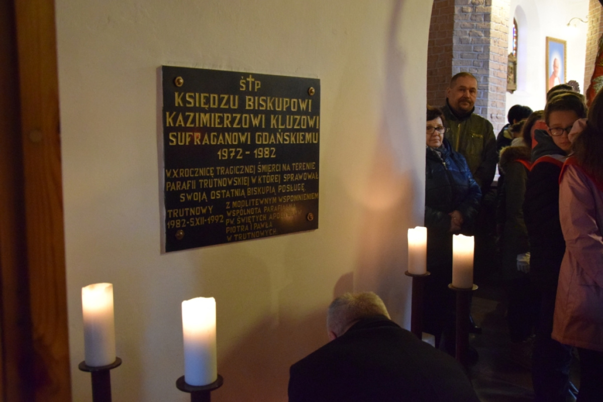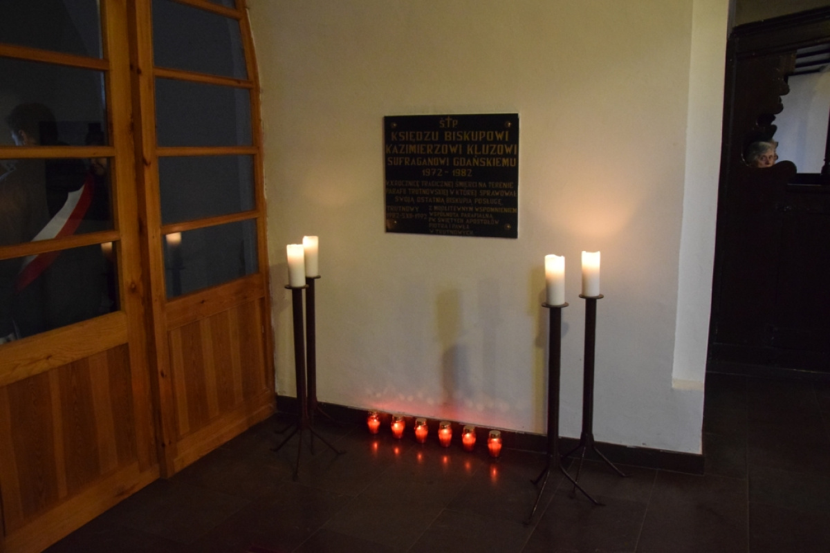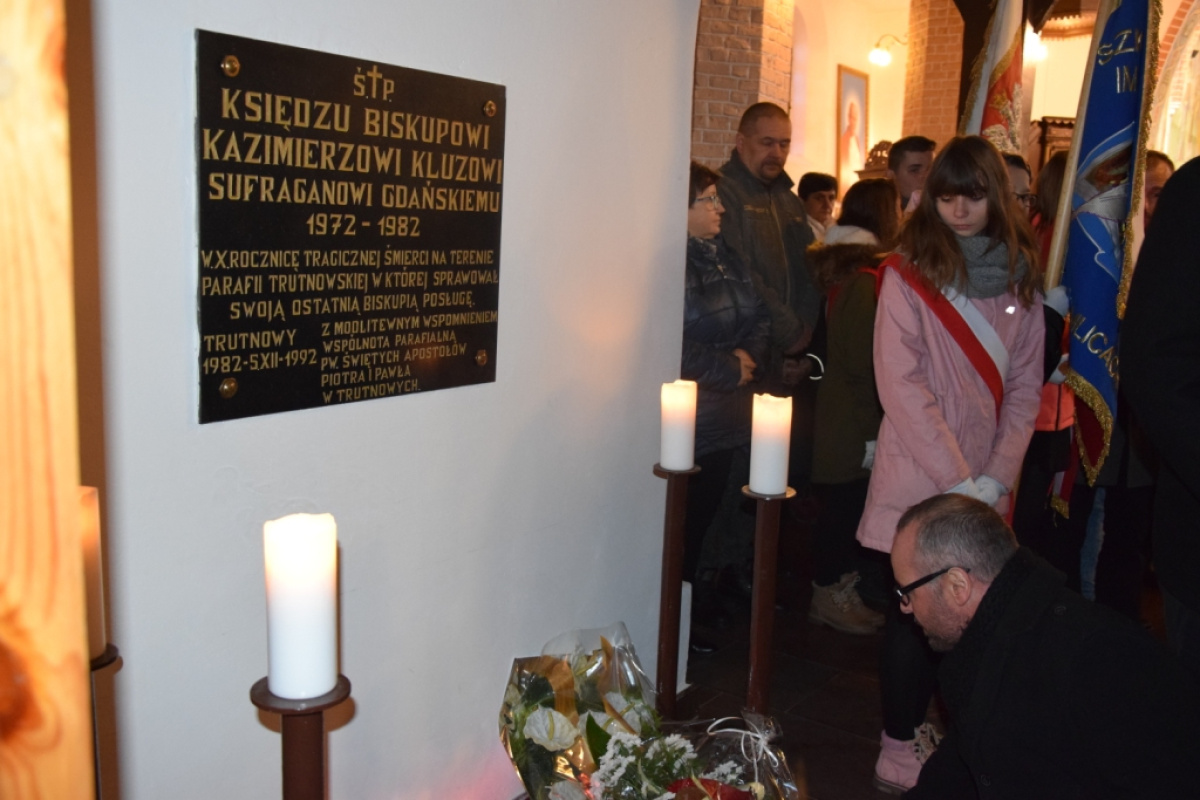 Na zakończenie, uczestnicy uroczystości złożyli kwiaty oraz znicze pod tablicą upamiętniającą ks. biskupa sufragana gdańskiego Kazimierza Kluza. W uroczystości wzięli udział licznie zebrani wierni, a także przedstawiciele placówek oświatowych z terenu gminy wraz z pocztami sztandarowymi, Radni, Sołtysi i zaproszeni goście.