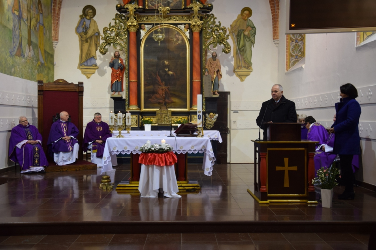 Po mszy świętej, głos w imieniu samorządu zabrali Pan Janusz Goliński - Wójt Gminy Cedry Wielkie i Pani Bożena Daszewska - Przewodnicząca Rady Gminy Cedry Wielkie, dziękując księżom za odprawienie mszy świętej oraz słowo boże i wspólną modlitwę.