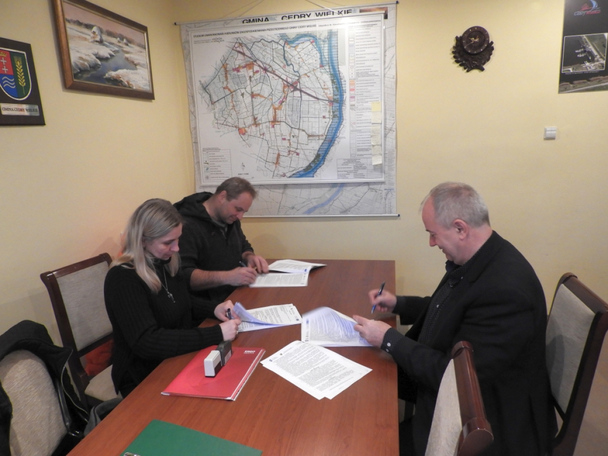 W dniu 11.12.2017 r. w Urzędzie Gminy w Cedrach Wielkich Pan Wójt Janusz Goliński podpisał z Konsorcjum firm w składzie: Firma Handlowa „DOKUMENT” Wojciech Stanisławski i TEKTONIKA Anna Latowska umowę na termomodernizację dwóch budynków należących do Gminy Cedry Wielkie. W ramach inwestycji zostanie wykonana dokumentacja projektowa oraz roboty termomodernizacyjne w budynku po byłej Szkole Podstawowej w Trutnowach oraz w komunalnym budynku przy ul. M. Płażyńskiego 18 w Cedrach Wielkich.